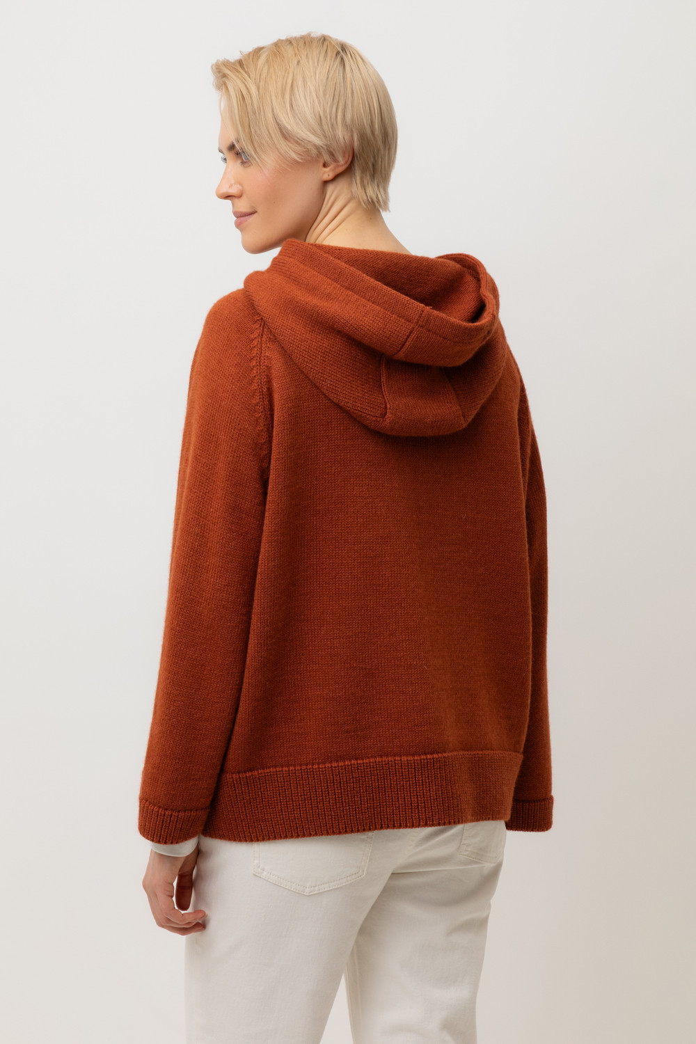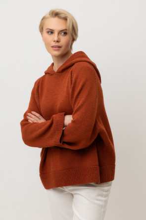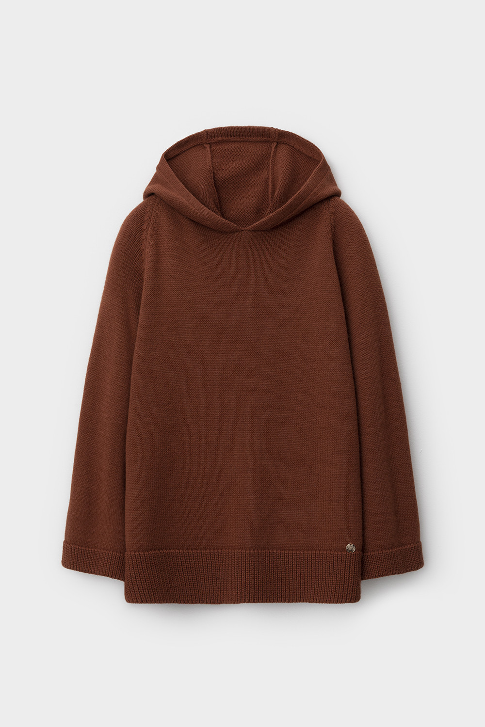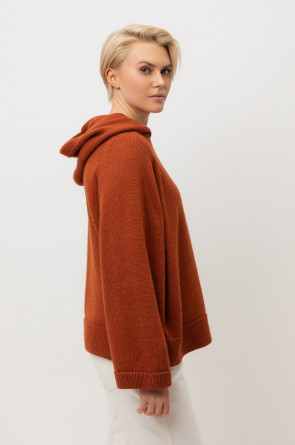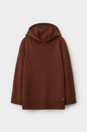 Мягкий джемпер с капюшоном, изготовленный из высококачественной пряжи. Уникальное сочетание шерсти и акрила дарит ощущение уюта, приятно прилегает к телу, является гипоаллергенным и отлично сохраняет форму. Капюшон добавляет стильную особенность изделию и становится практичным дополнением для ветренной погоды.
