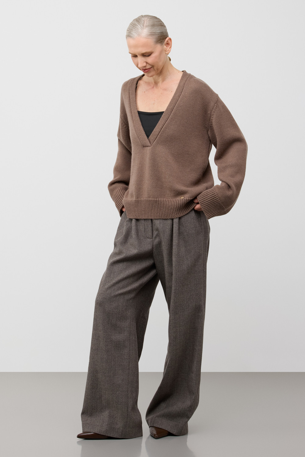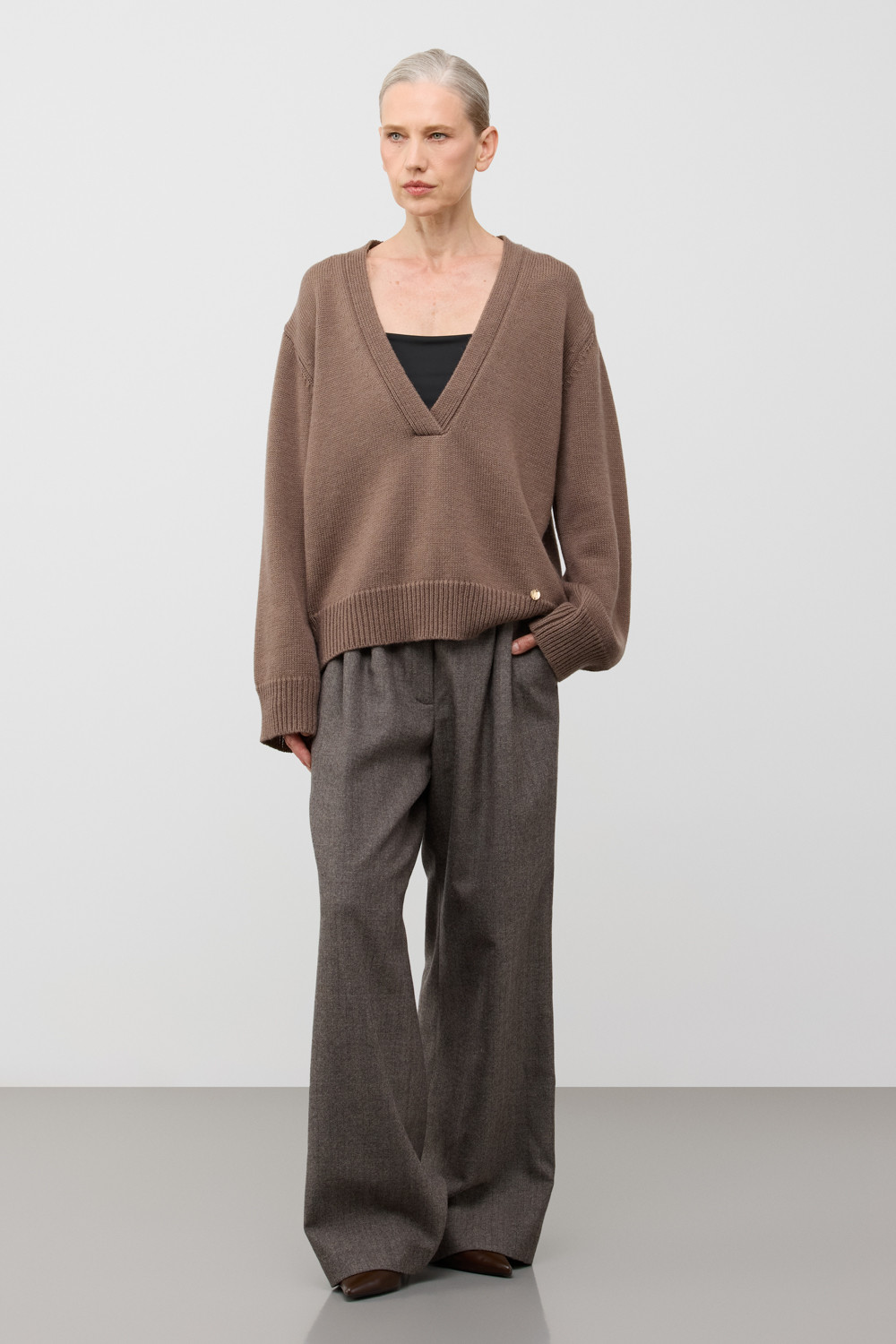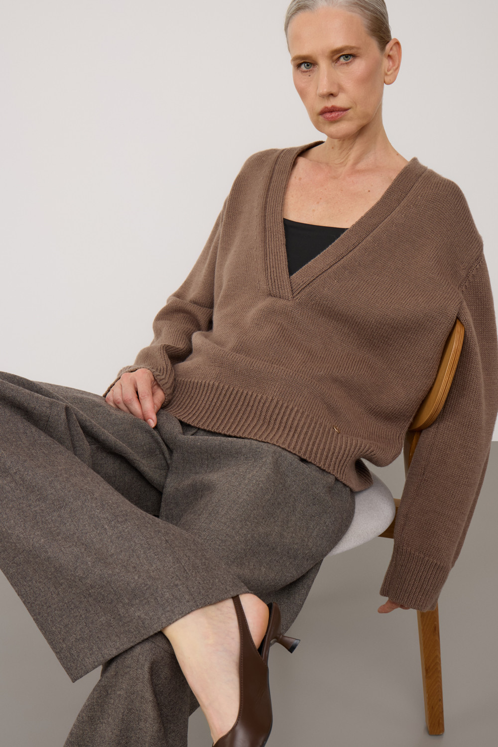 Мягкий вязаный джемпер из премиальной пряжи, созданный с использованием инновационной технологии смешанного волокна. Деликатное сочетание шерсти и акрила обеспечивает непревзойденный комфорт: изделие нежно облегает фигуру, гарантирует мягкость прикосновения и сохраняет безупречную форму.