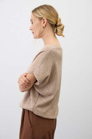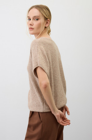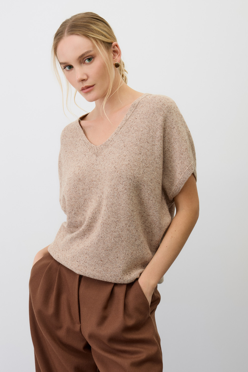 Джемпер с коротким руковом из уникальной коллекции премиальных изделий, выполненных из итальянской шерсти, включает в себя мягчайшую шерсть мериноса и натуральный шелк. Это идеальное сочетание обеспечивает комфортное прилегание к телу, отличную терморегуляцию, воздухопроницаемость и отсутствие раздражения даже на самой чувствительной коже. Гладкая текстура с изысканными вкраплениями выглядит особенно стильно и современно.