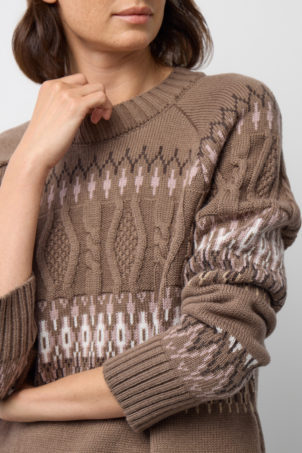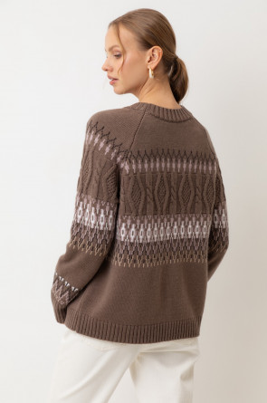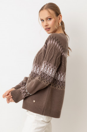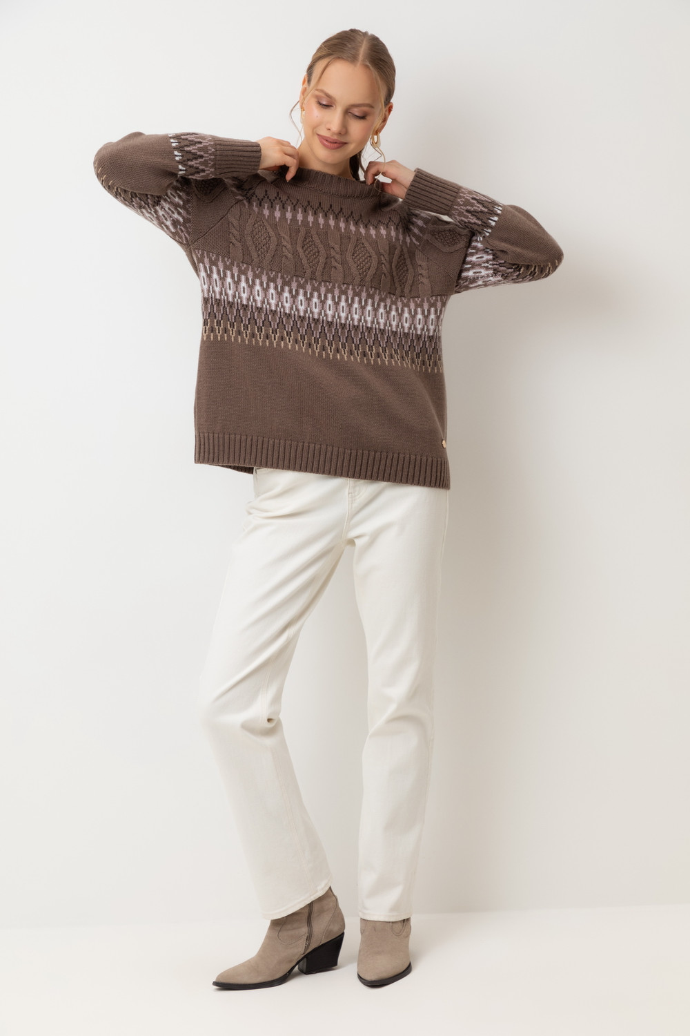 Мягкий джемпер в скандинаском стиле из премиальной пряжи, созданный с использованием инновационной технологии смешанного волокна. Деликатное сочетание шерсти и акрила обеспечивает непревзойденный комфорт: изделие нежно облегает фигуру, гарантирует мягкость прикосновения и сохраняет безупречную форму.