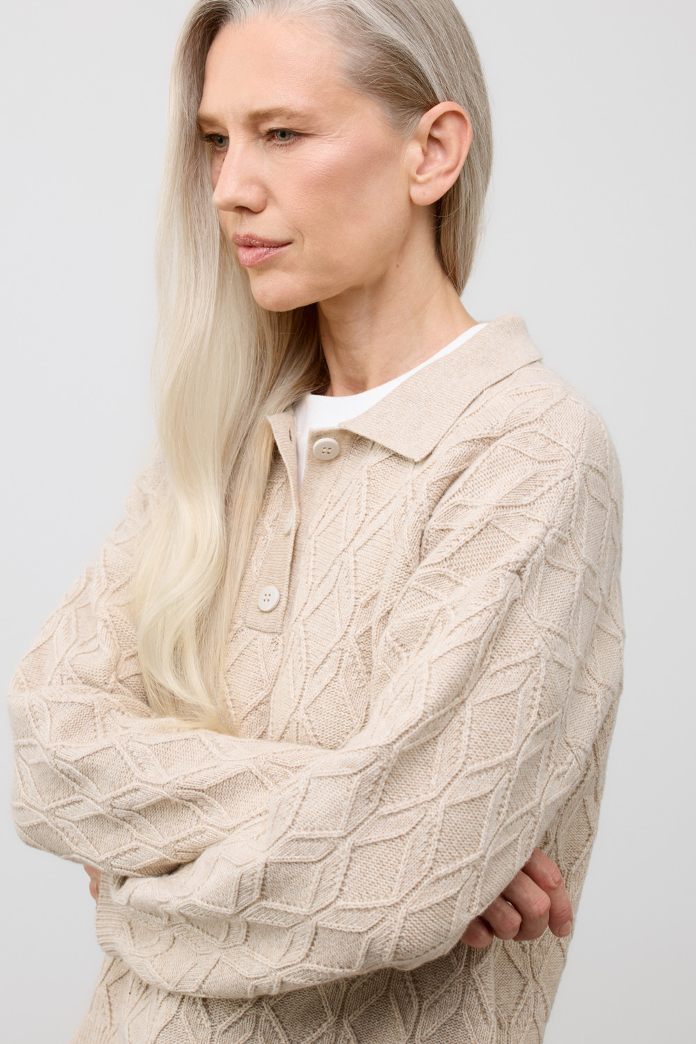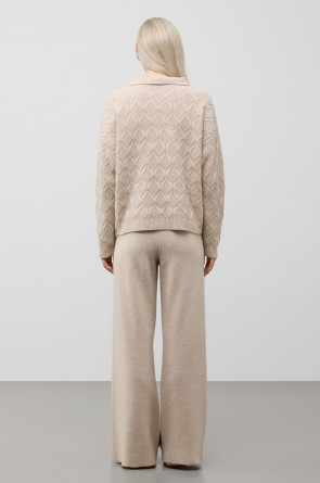 Мягкий джемпер из изысканной пряжи. Уникальное сочетание натуральных волокон обеспечивает непревзойденную мягкость. Меринос отлично удерживает тепло, кашемир придает шелковистость, а вискоза приятный блеск.