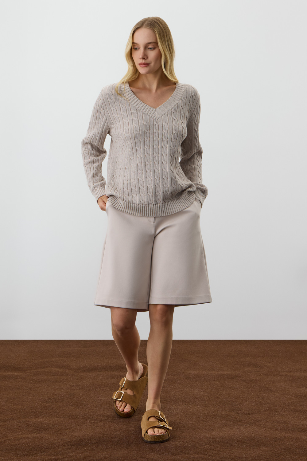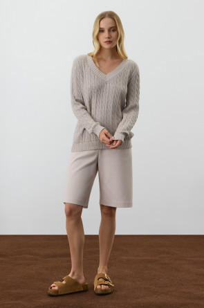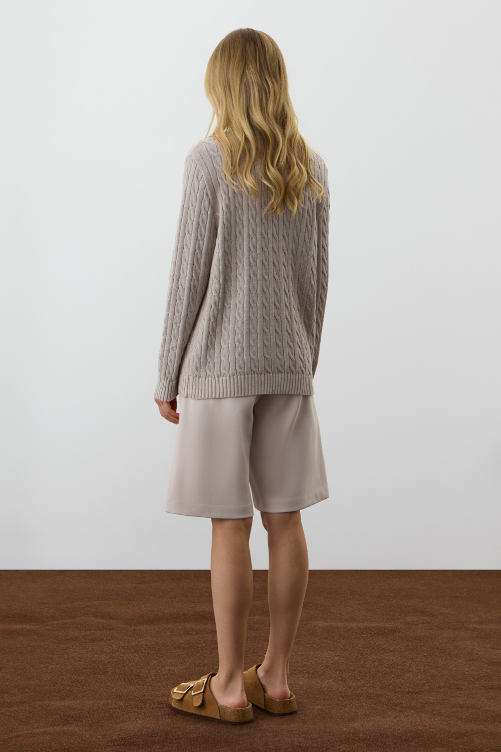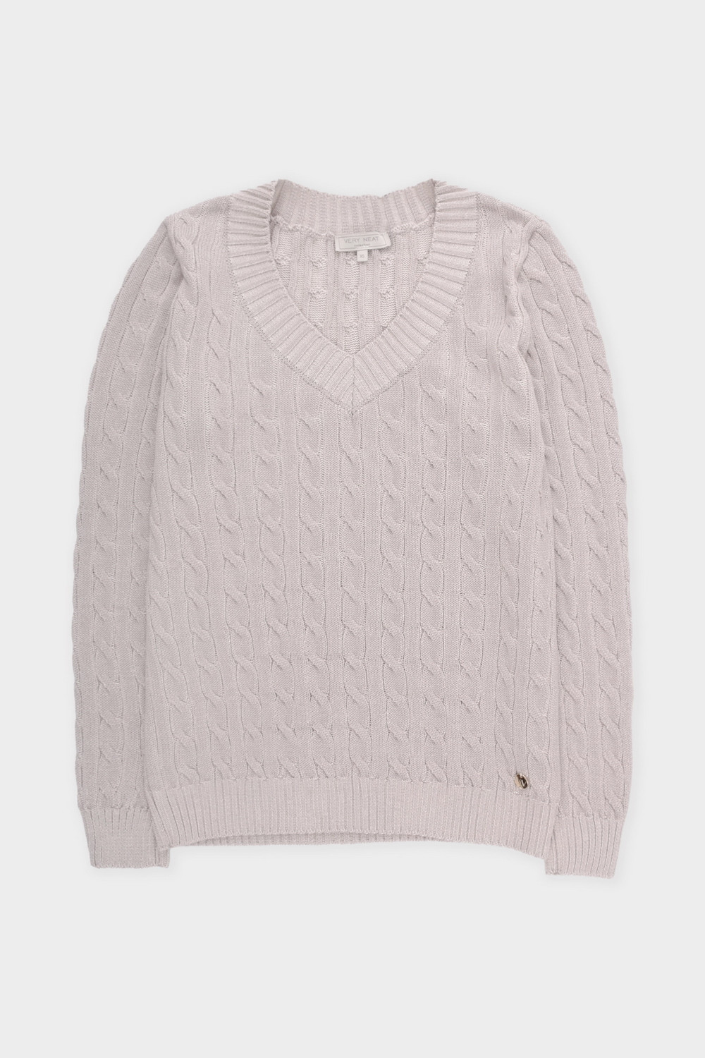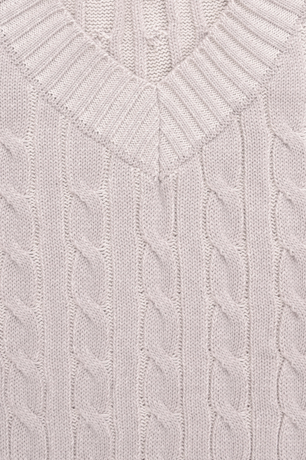 Хлопковый джемпер дополняет классический вырез, а вязка косами элегантно завершает изделие. Джемпер прошел дополнительную обработку по итальянской технологии, это гарантирует минимальную усадку во время носки. Акрил в составе не позволяет изделию пилинговаться.