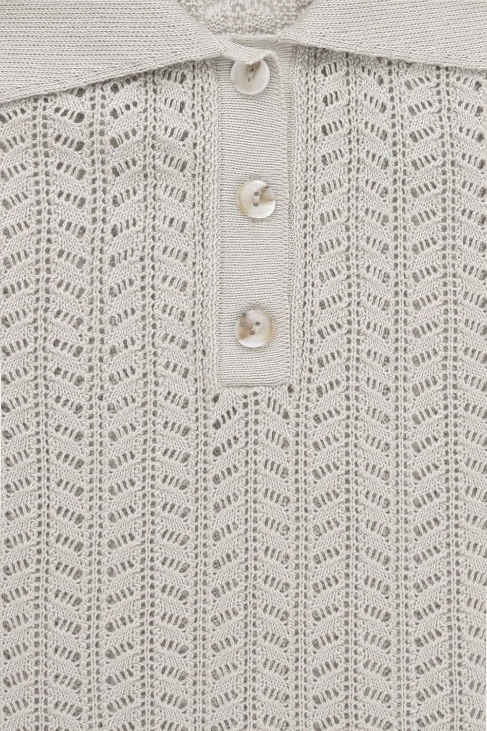 Воздушное поло ажурной вязки является классическим элементом летнего гардероба. Джемпер прошел дополнительную обработку по итальянской технологии, это гарантирует минимальную усадку во время носки. Акрил в составе не позволяет изделию пилинговаться.