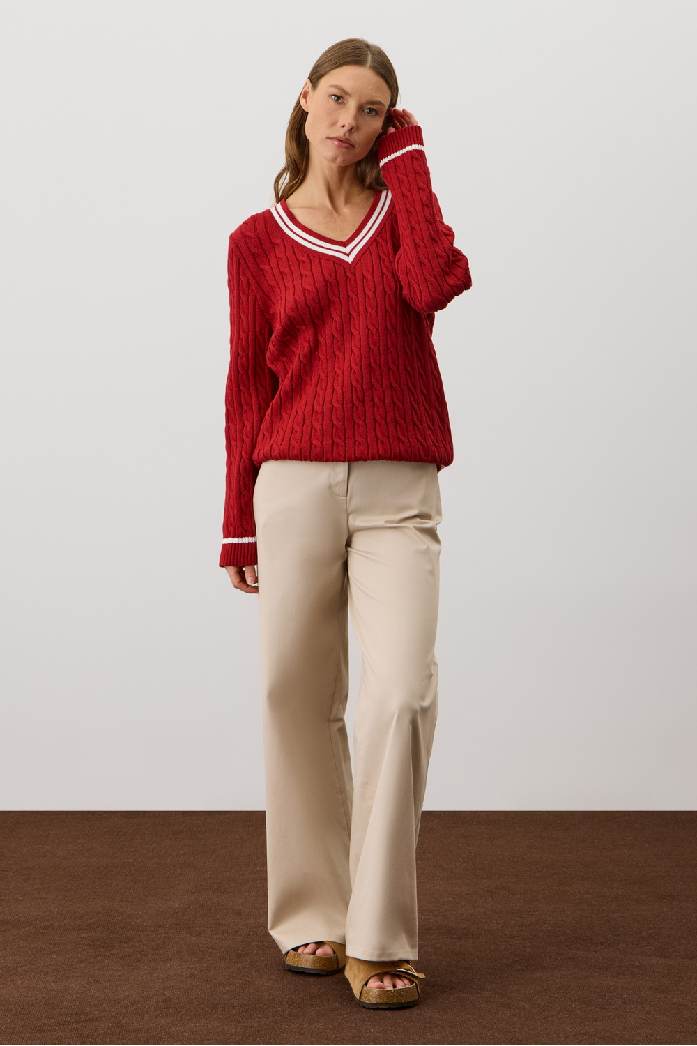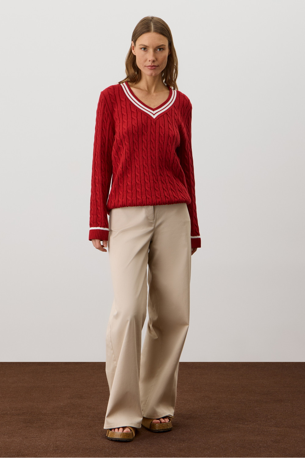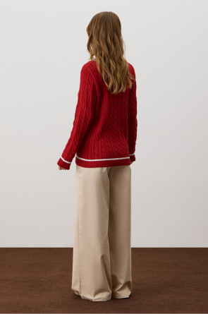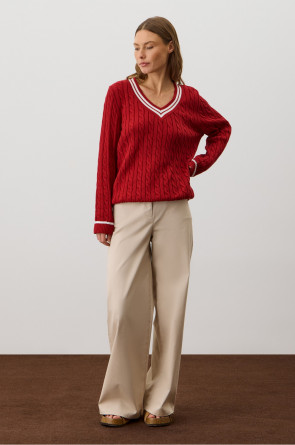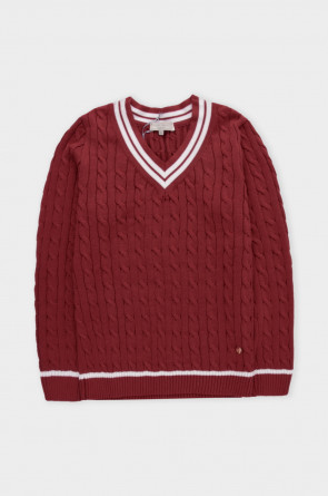 Хлопковый джемпер дополняет классический вырез и контрастные детали, а вязка косами элегантно завершает изделие. Джемпер прошел дополнительную обработку по итальянской технологии, это гарантирует минимальную усадку во время носки. Акрил в составе не позволяет изделию пилинговаться.