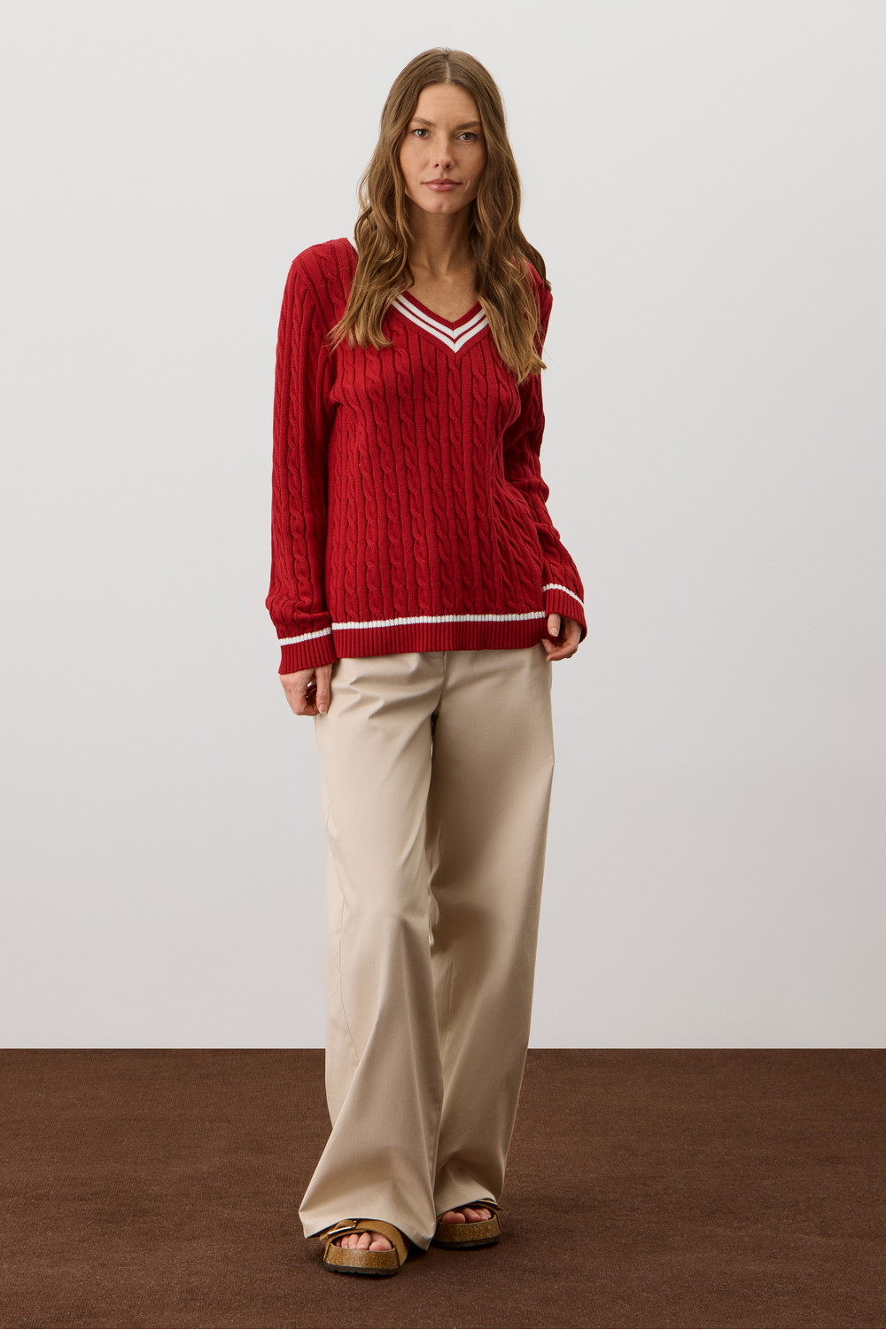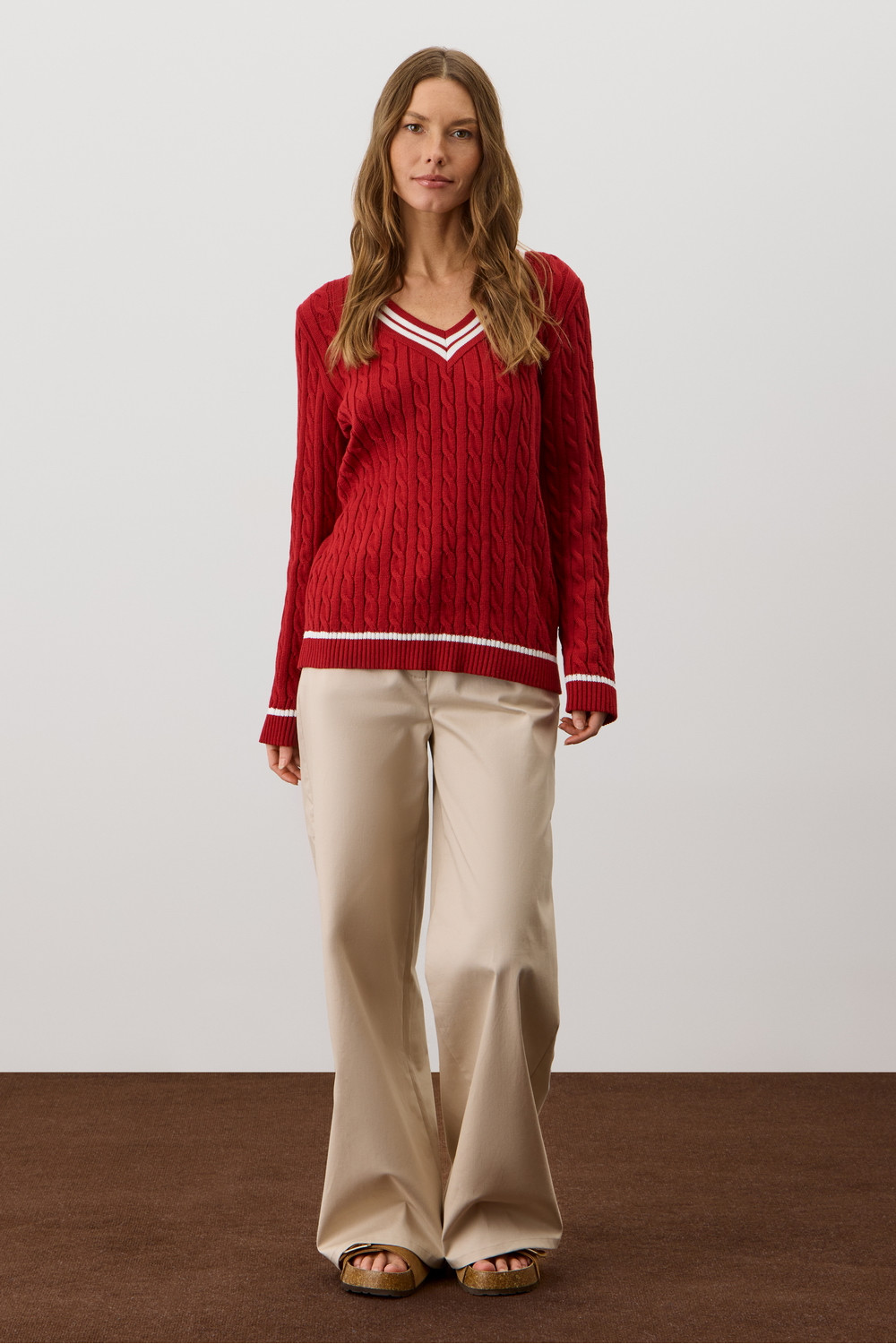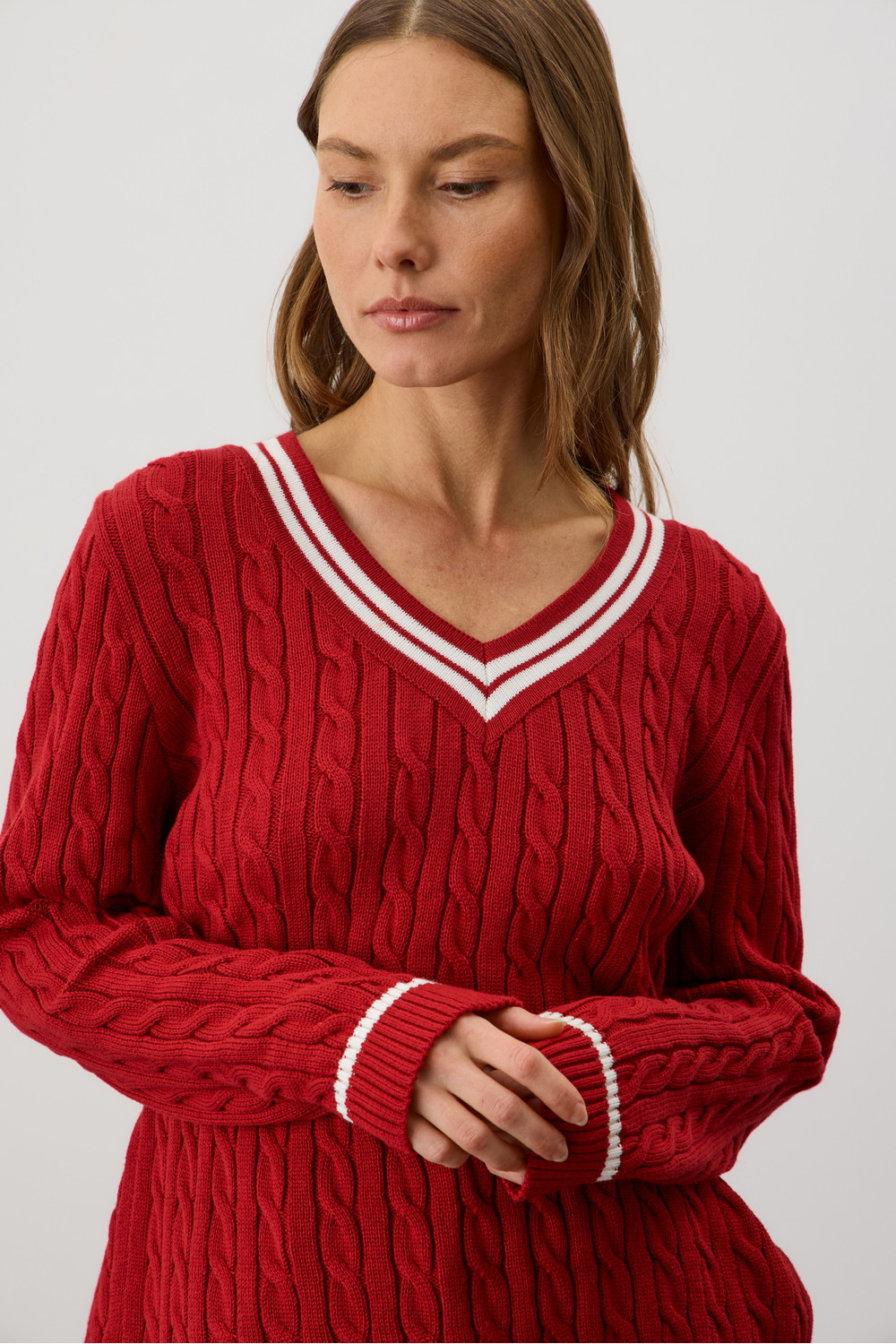 Хлопковый джемпер дополняет классический вырез и контрастные детали, а вязка косами элегантно завершает изделие. Джемпер прошел дополнительную обработку по итальянской технологии, это гарантирует минимальную усадку во время носки. Акрил в составе не позволяет изделию пилинговаться.