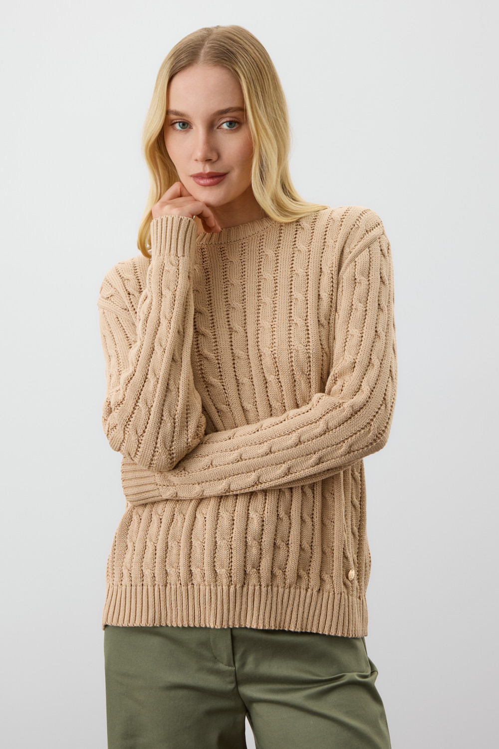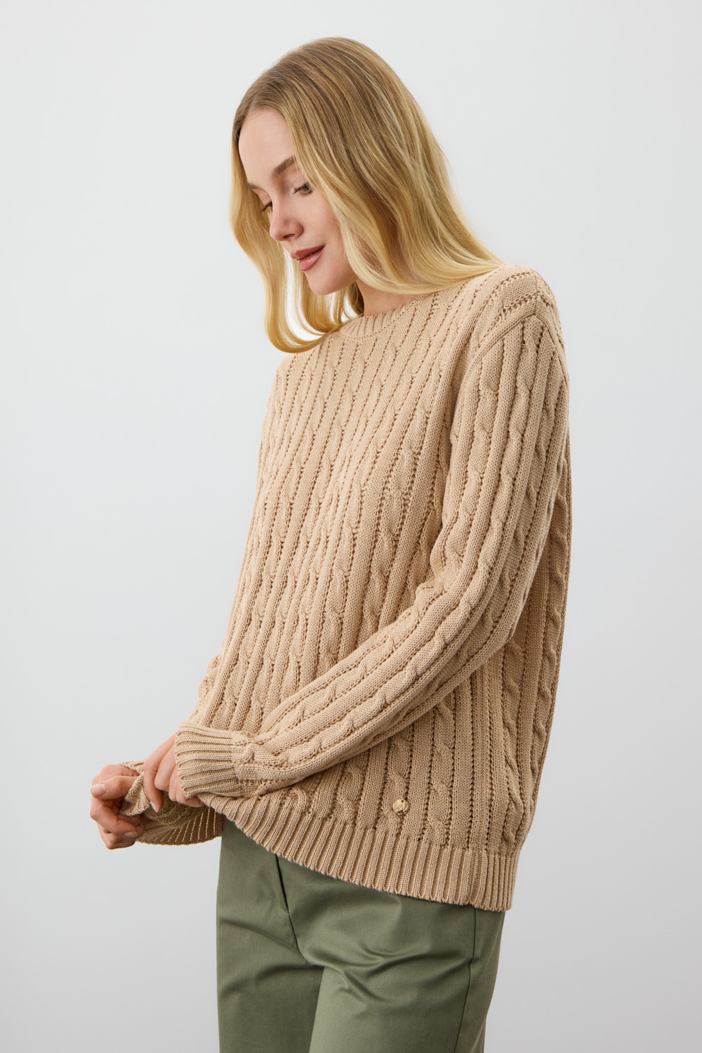 Классический вязаный джемпер это основа на любой сезон. Джемпер создан из хлопковой пряжи и прошел дополнительную обработку по итальянской технологии, это гарантирует минимальную усадку во время носки. Акрил в составе не позволяет изделию пилинговаться.