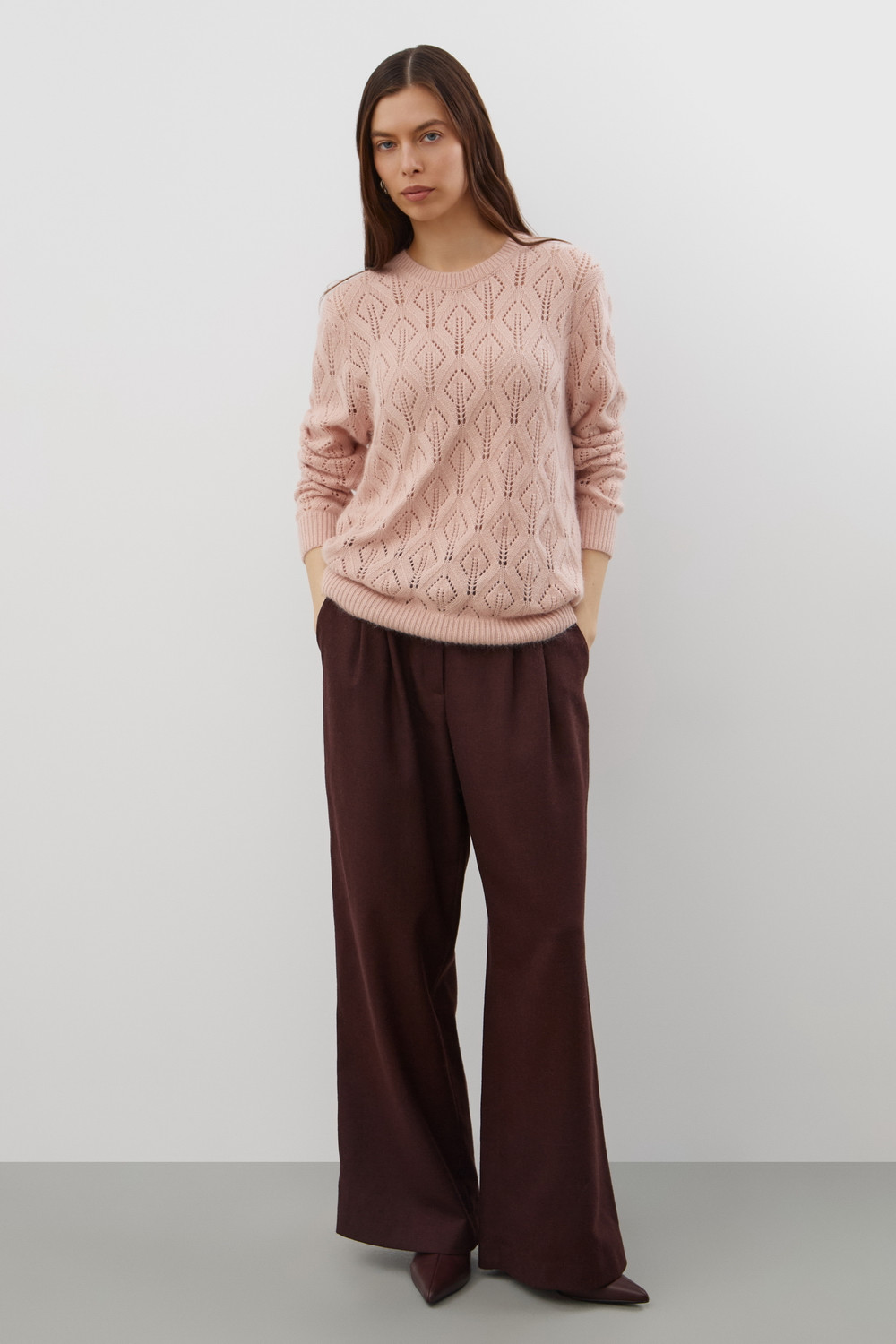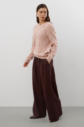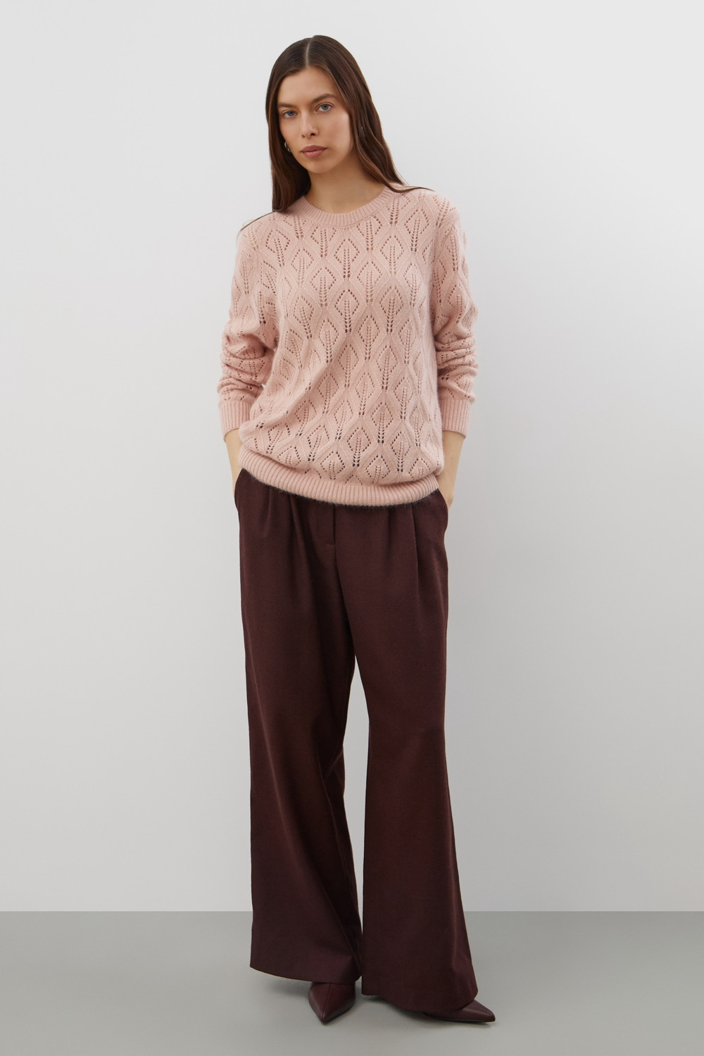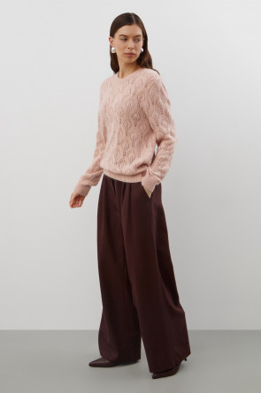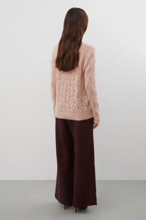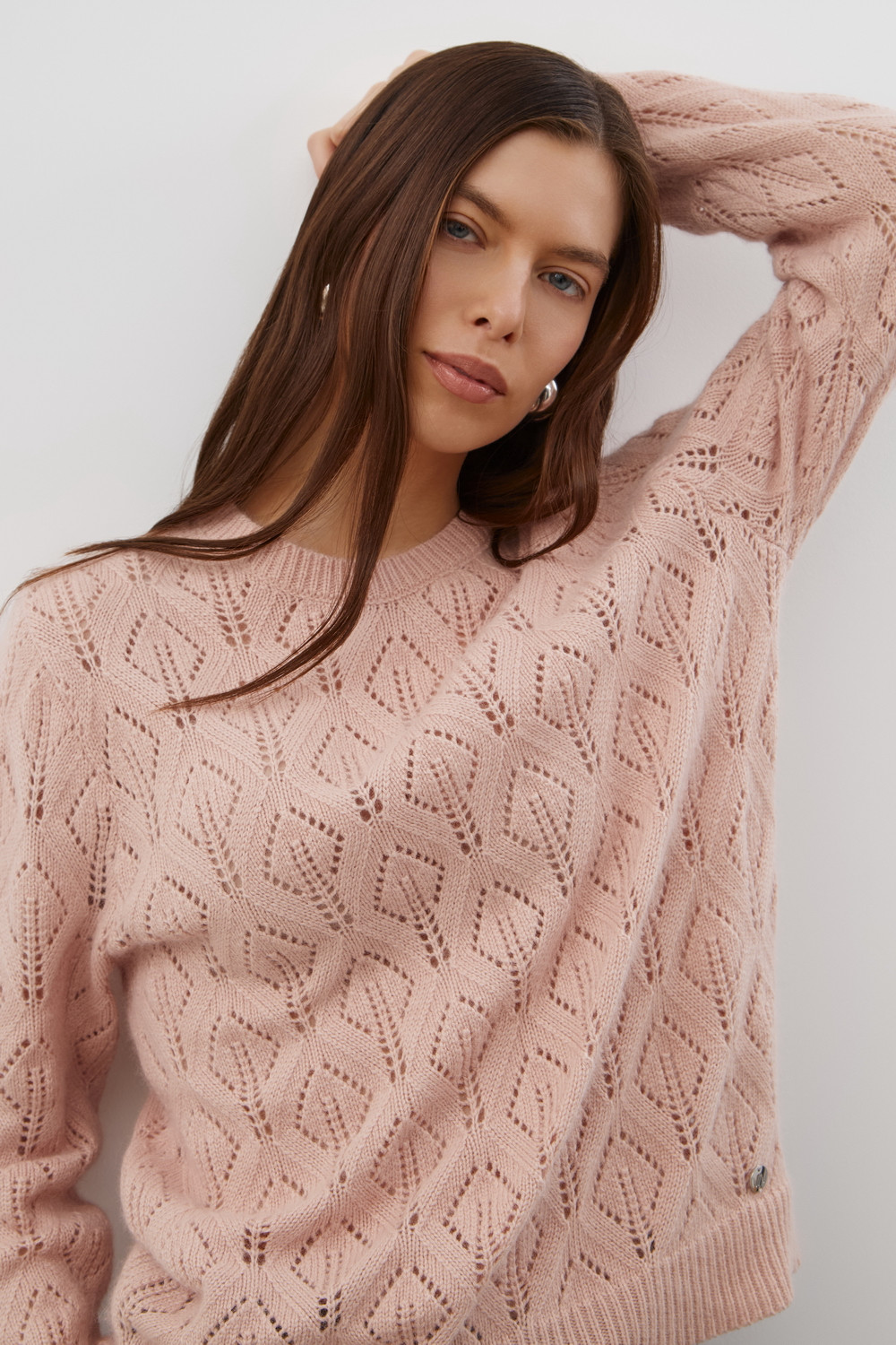 Ажурный джемпер из шерсти ангоры. Изделие идеально садится по фигуре, гарантирует мягкость прикосновения и сохраняет безупречную форму даже после длительной носки.