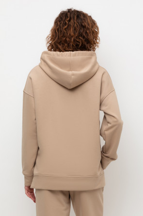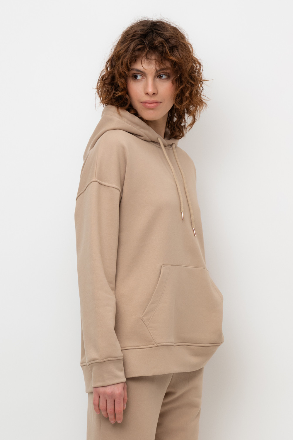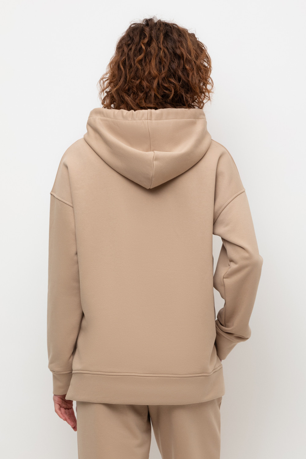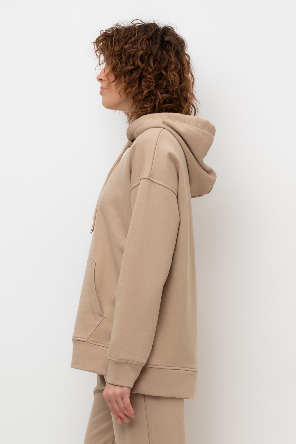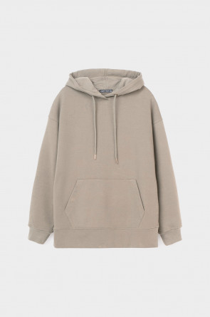 Трикотажная толстовка-оверсайз из петельчатого футера трехнитки. Капюшон регулируется с помощью шнура. У изделия свободная посадка, карман-кенгуру, эластичные манжеты. По бокам разрезы. Гладкий и плотный материал на основе хлопка сохраняет форму.