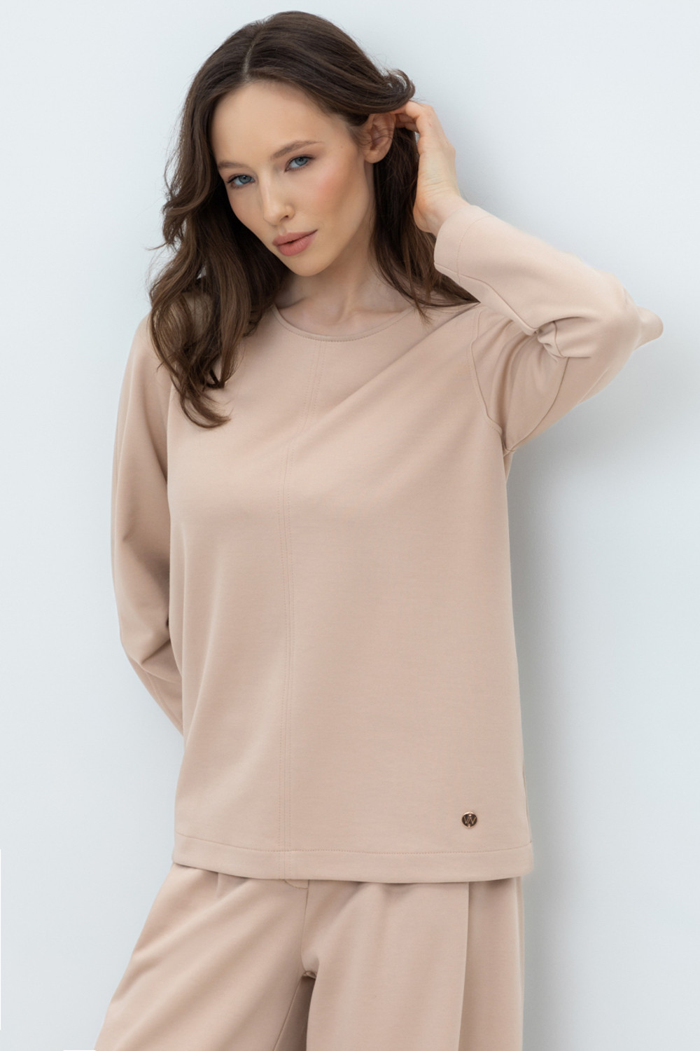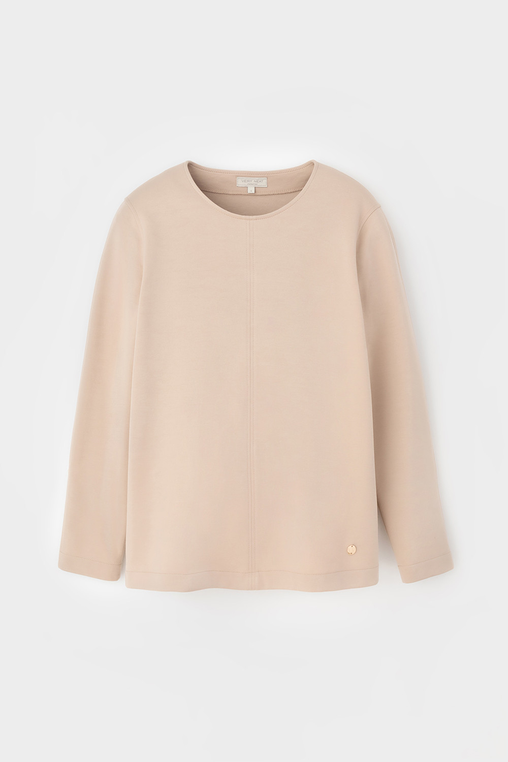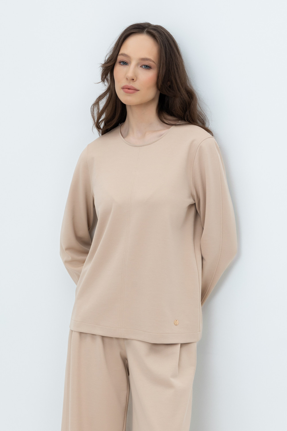 Джемпер с длинными рукавами из плотного гладкого трикотажа интерлок.