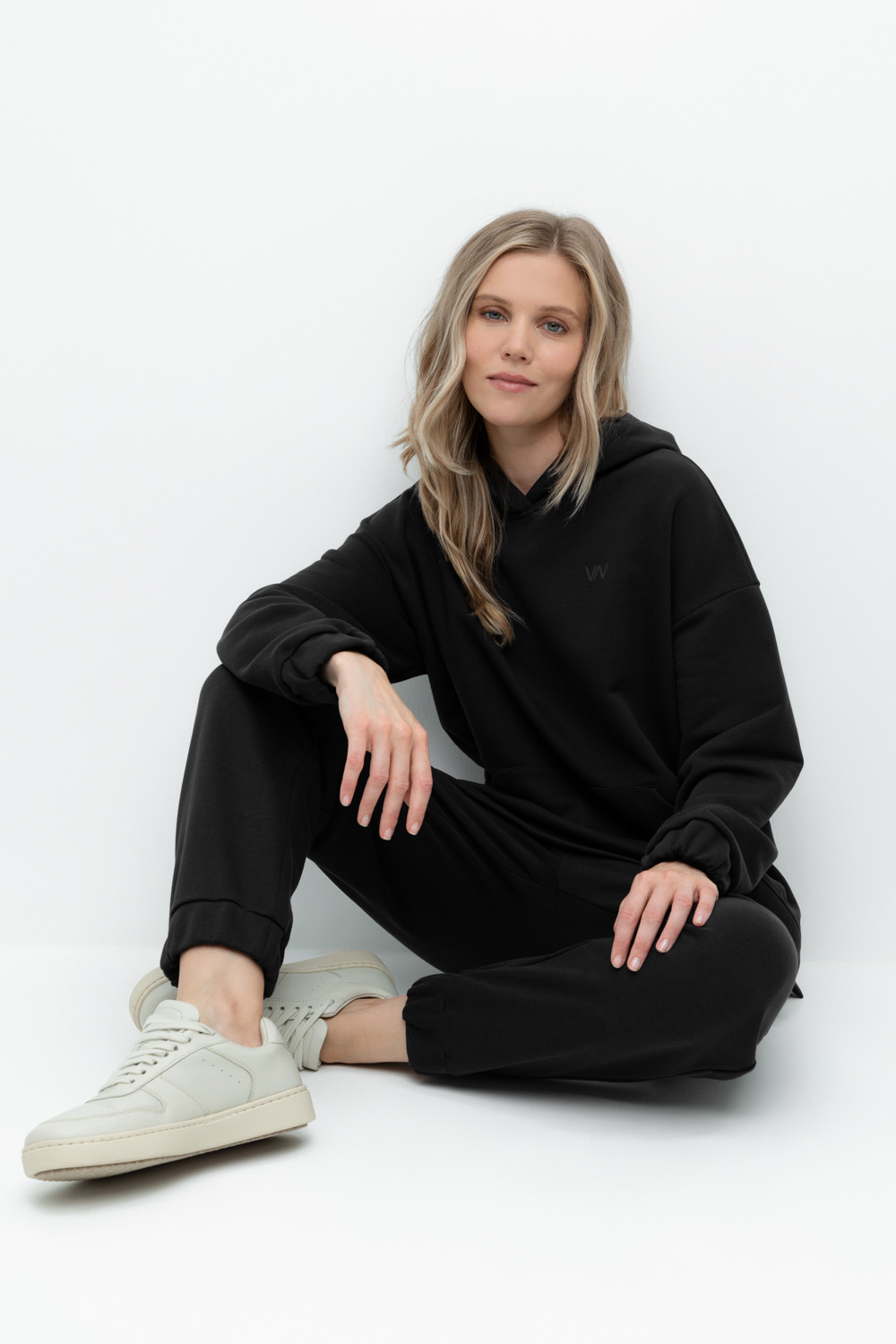 Теплая толстовка с капюшоном, карманом кенгуру и спущенным плечом из мягкого футера трехнитки. Уютный капюшон с подкладом из супрема. В боковых швах разрезы