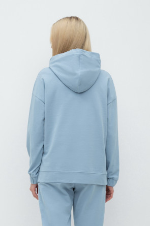Теплая толстовка с капюшоном, карманом кенгуру и спущенным плечом из мягкого футера трехнитки. Уютный капюшон с подкладом из супрема. В боковых швах разрезы