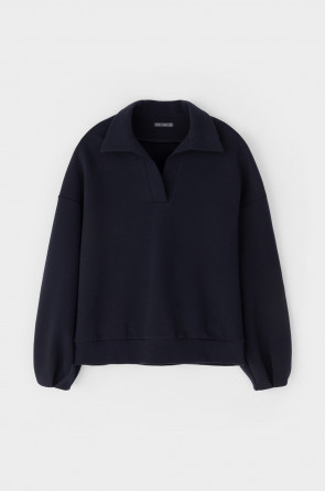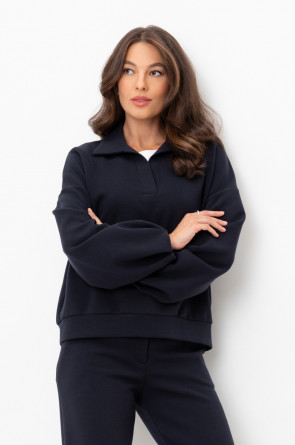 Джемпер с объемными рукавами из плотного трикотажа интерлок. Спущенное плечо и прямой силуэт придают изделию свободный объем.