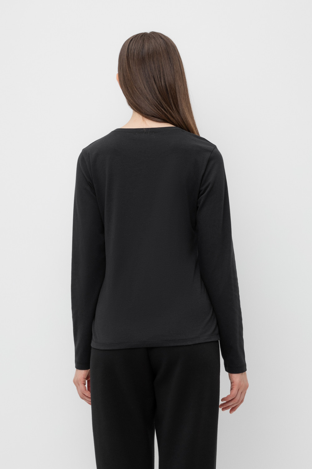 Базовый лонгслив из плотного однотонного трикотажа супрем с добавлением спандекса.