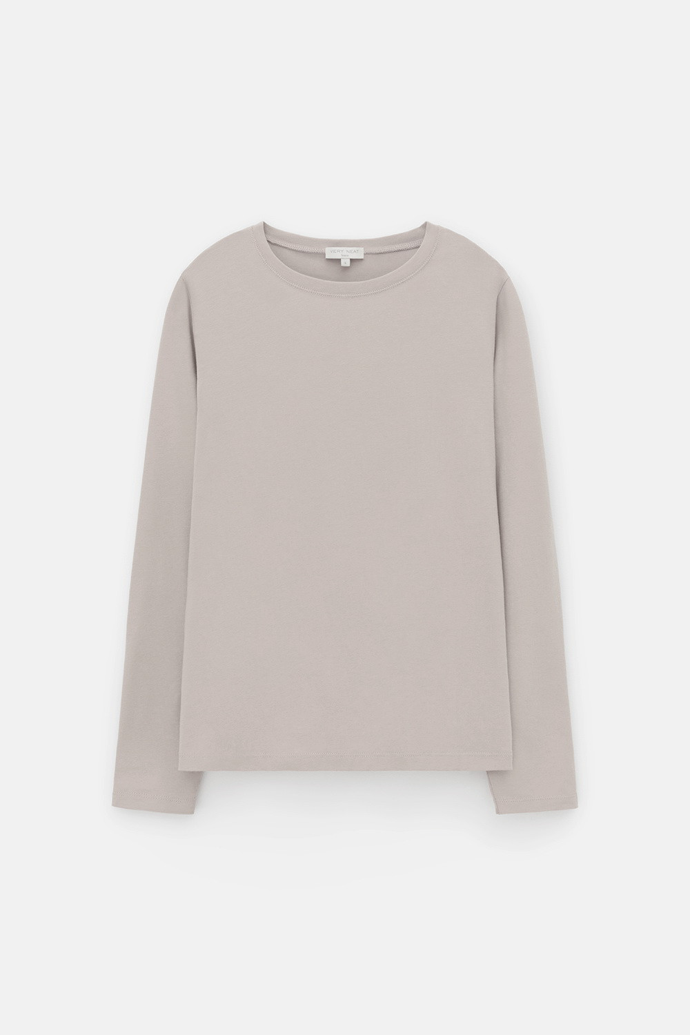 Базовый лонгслив из плотного однотонного трикотажа супрем с добавлением спандекса.