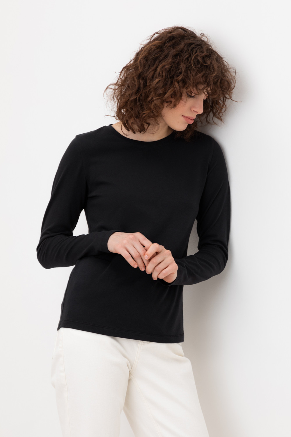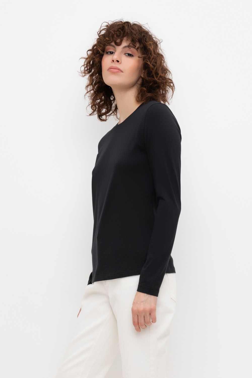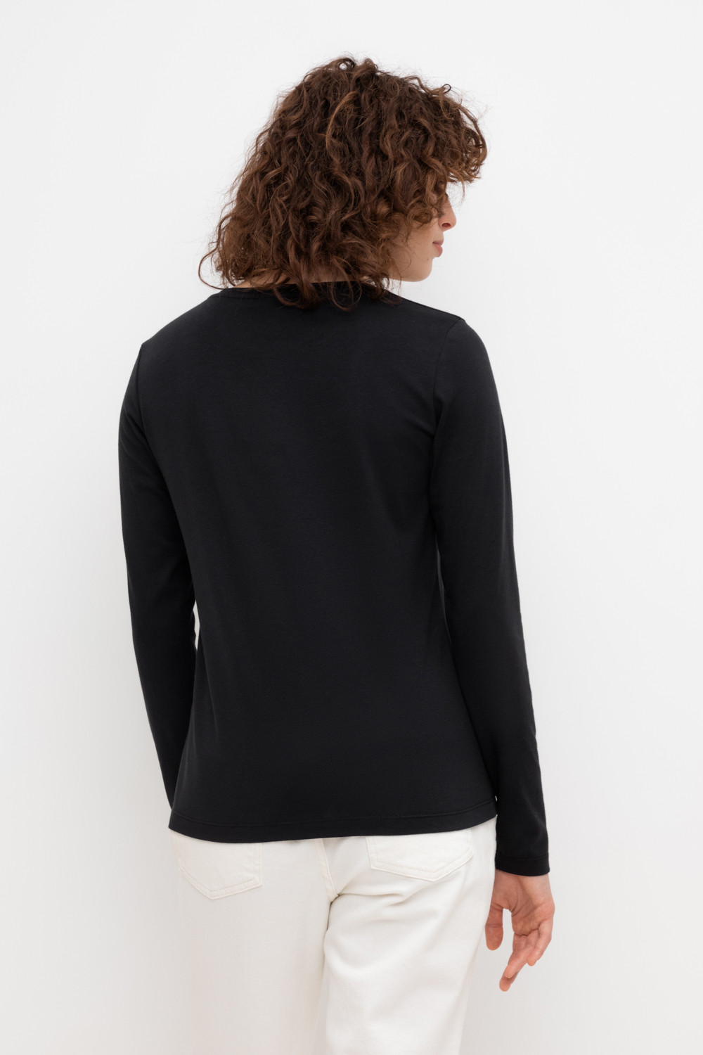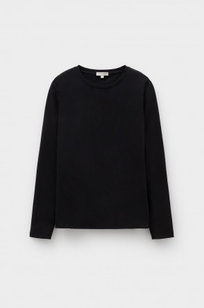 Базовый лонгслив из плотного однотонного трикотажа супрем с добавлением спандекса.