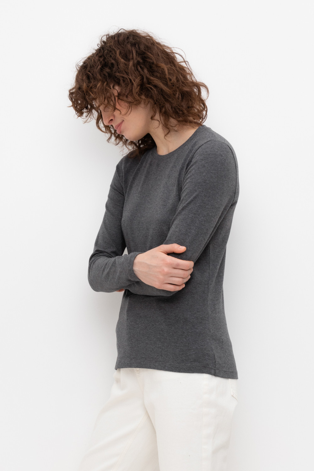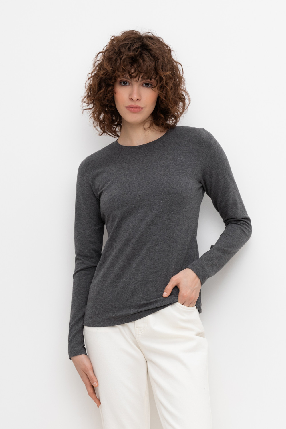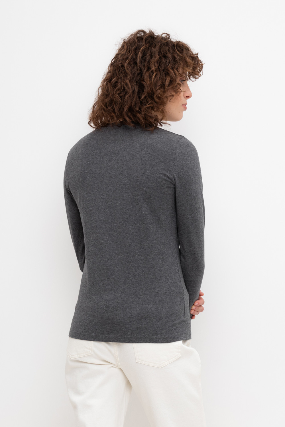 Базовый лонгслив из плотного однотонного трикотажа супрем с добавлением спандекса.