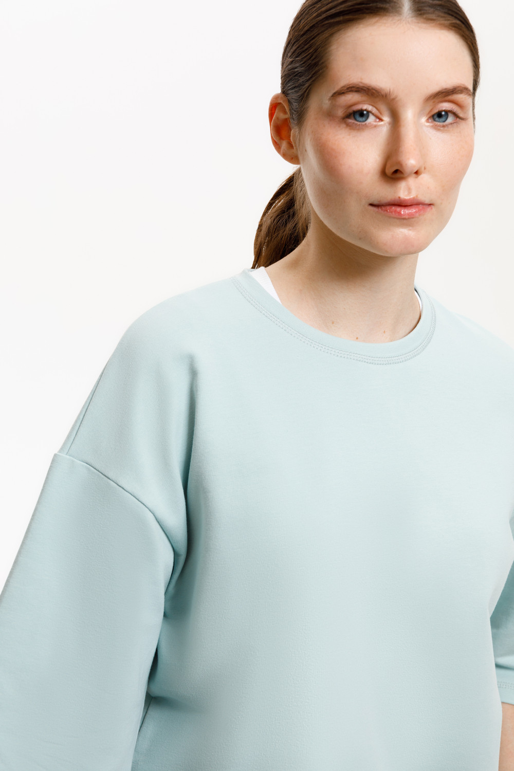 Джемпер со спущенным рукавом из высококачественного футера с эластаном дарит невероятный комфорт, позволяя наслаждаться каждым движением.