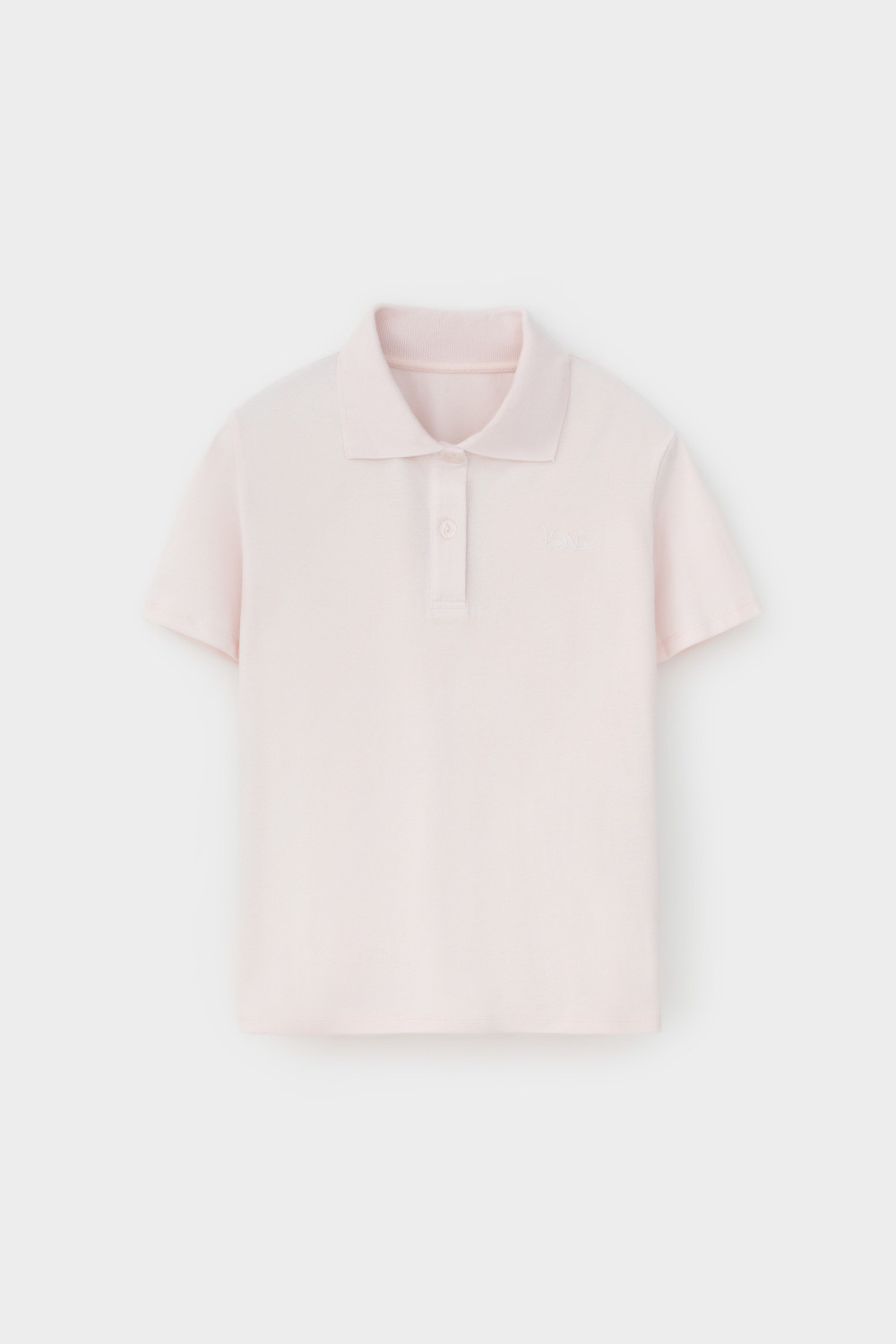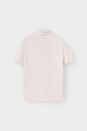 Классическая модель футболки-поло из легкого трикотажа пике в нежно-розовом оттенке. Придает комфорт за счет мягкого хлопка в составе.
