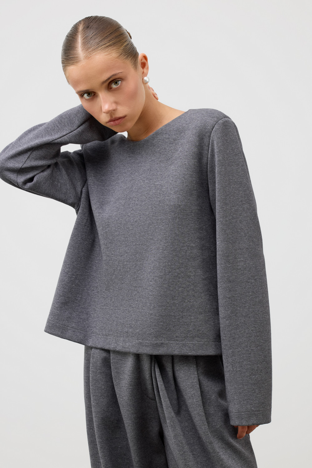 Укороченный лонгслив изготовлен из особого сочетания хлопка и полиэстера, что обеспечивает изделию мягкость, хорошую воздухопроницаемость и высокую прочность. Благодаря инновационному двойному плетению изделие отлично держит форму. Особая обработка силиконом добавляет легкости и дает приятную на ощупь шелковистую текстуру.
