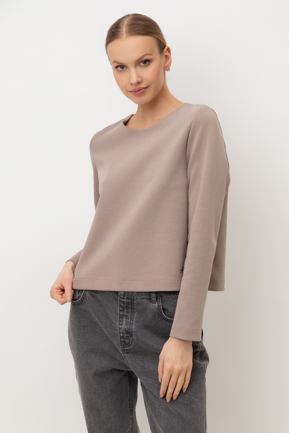 Укороченный лонгслив изготовлен из особого сочетания хлопка и полиэстера, что обеспечивает изделию мягкость, хорошую воздухопроницаемость и высокую прочность. Благодаря инновационному двойному плетению изделие отлично держит форму. Обработка ткани с использованием силикона добавляет ей легкости и дает приятную на ощупь шелковистую текстуру.