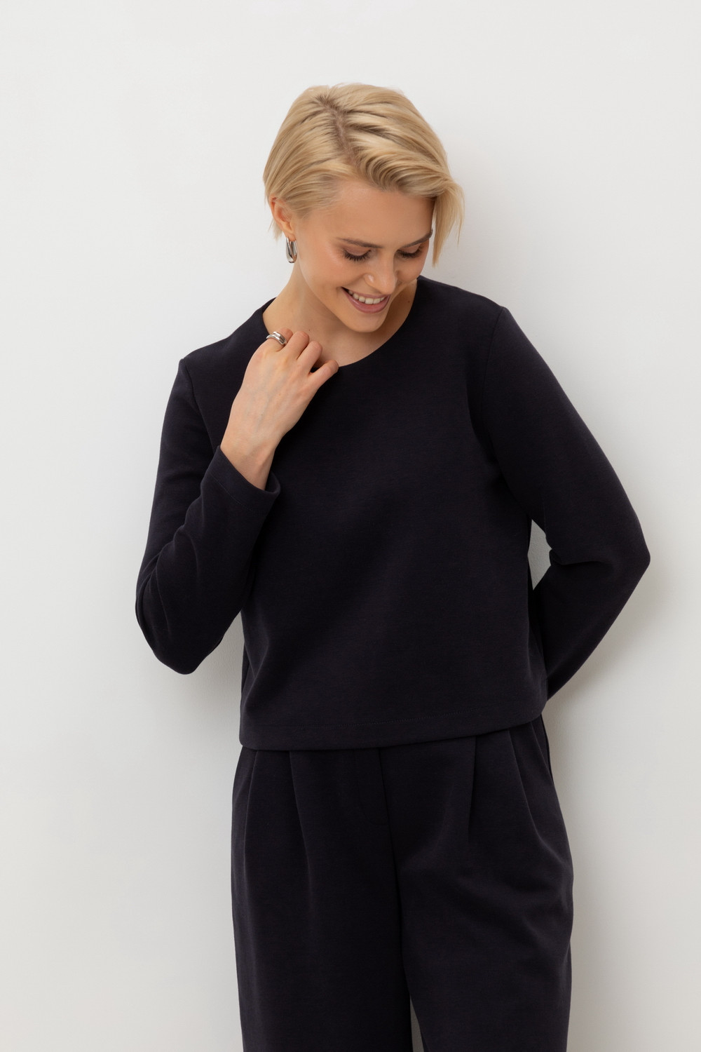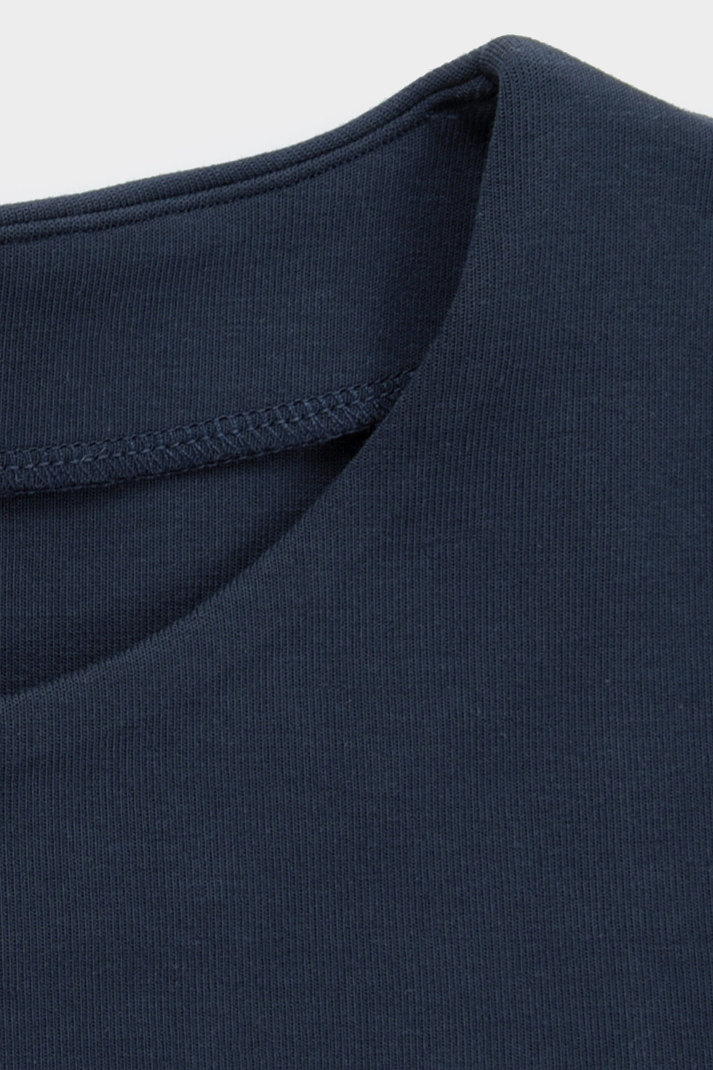 Укороченный лонгслив изготовлен из особого сочетания хлопка и полиэстера, что обеспечивает изделию мягкость, хорошую воздухопроницаемость и высокую прочность. Благодаря инновационному двойному плетению изделие отлично держит форму. Обработка ткани с использованием силикона добавляет ей легкости и дает приятную на ощупь шелковистую текстуру.