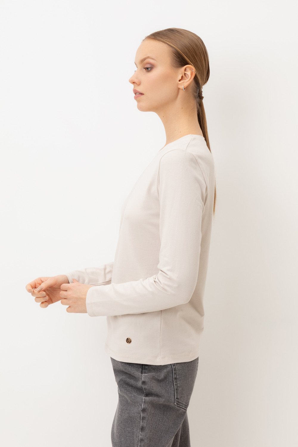 Базовый лонгслив из премиального трикотажа DOUBLE FACE. Особая обработка ткани придает легкость и шелковистость текстуры. Имеет классический круглый вырез и удобный прямой крой.