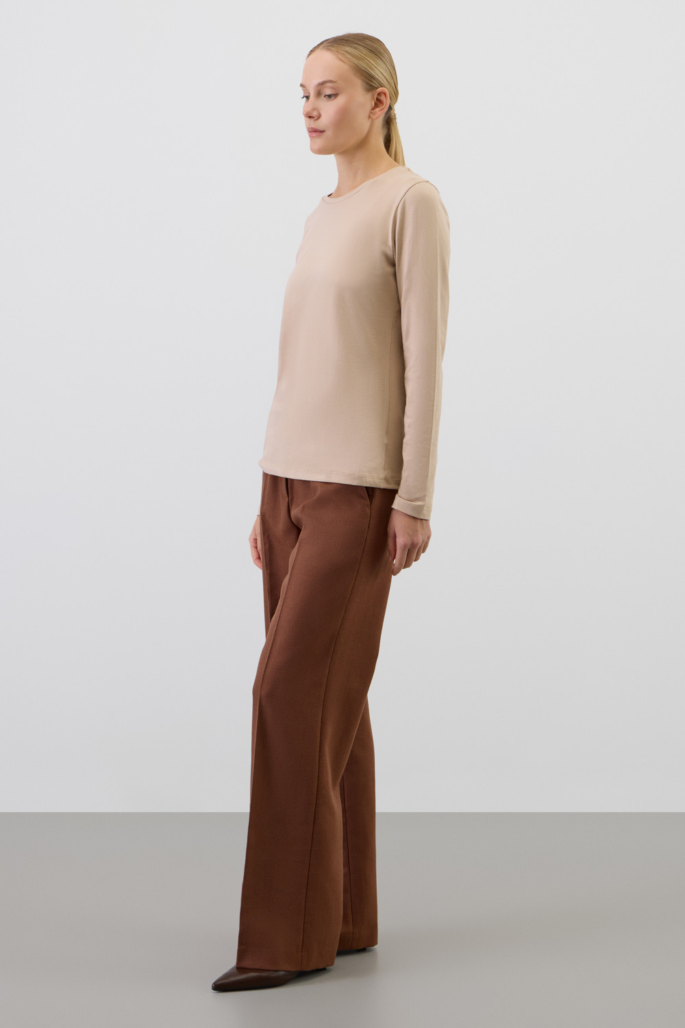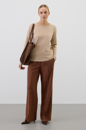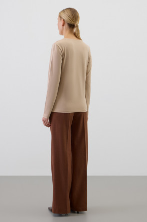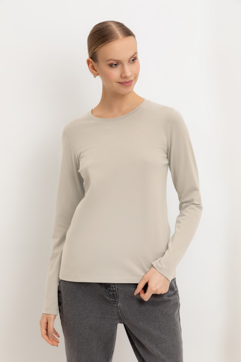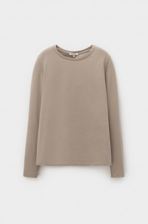 Базовый лонгслив из премиального трикотажа DOUBLE FACE. Особая обработка ткани придает легкость и шелковистость текстуры. Имеет классический круглый вырез и удобный прямой крой.