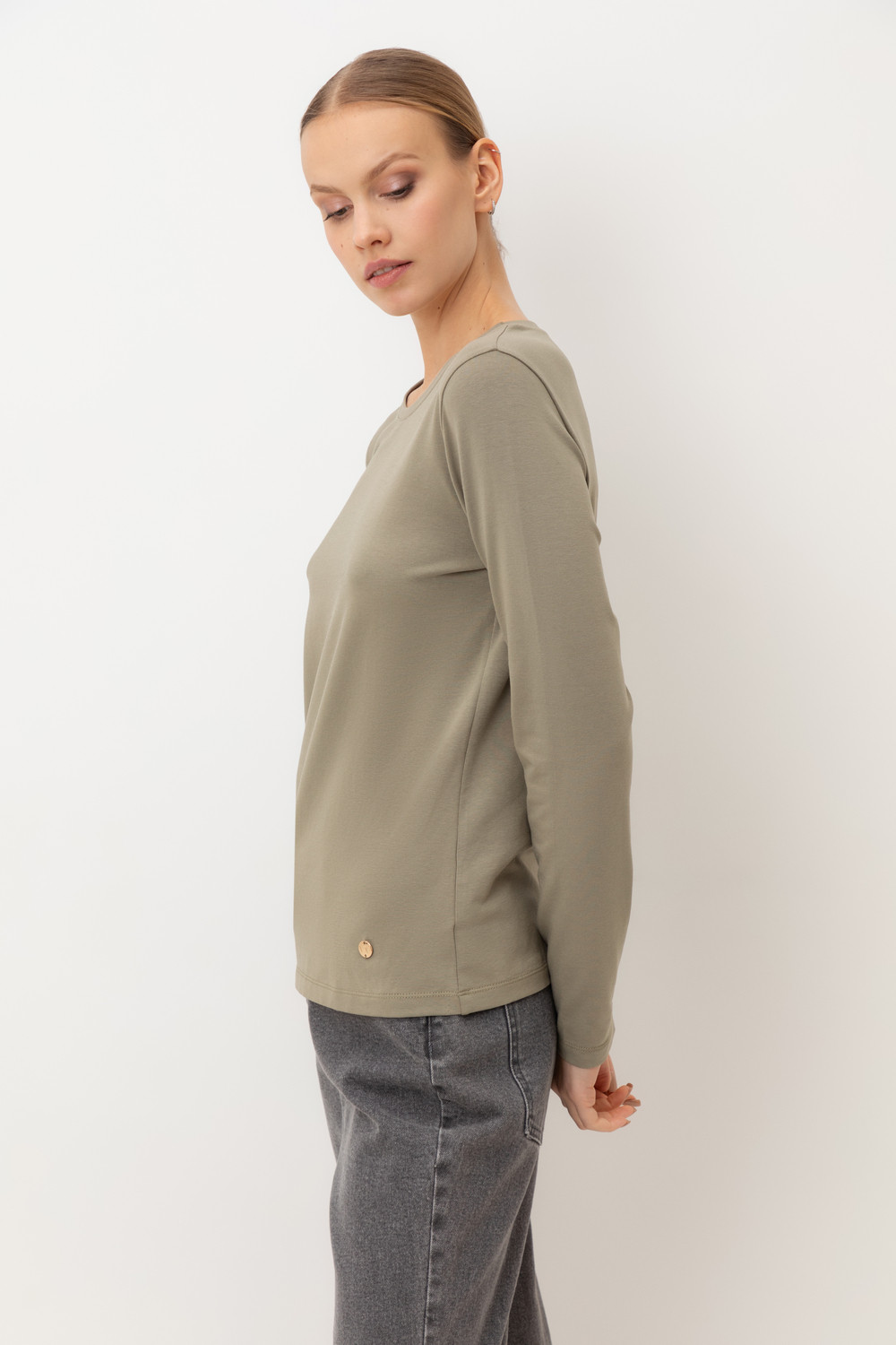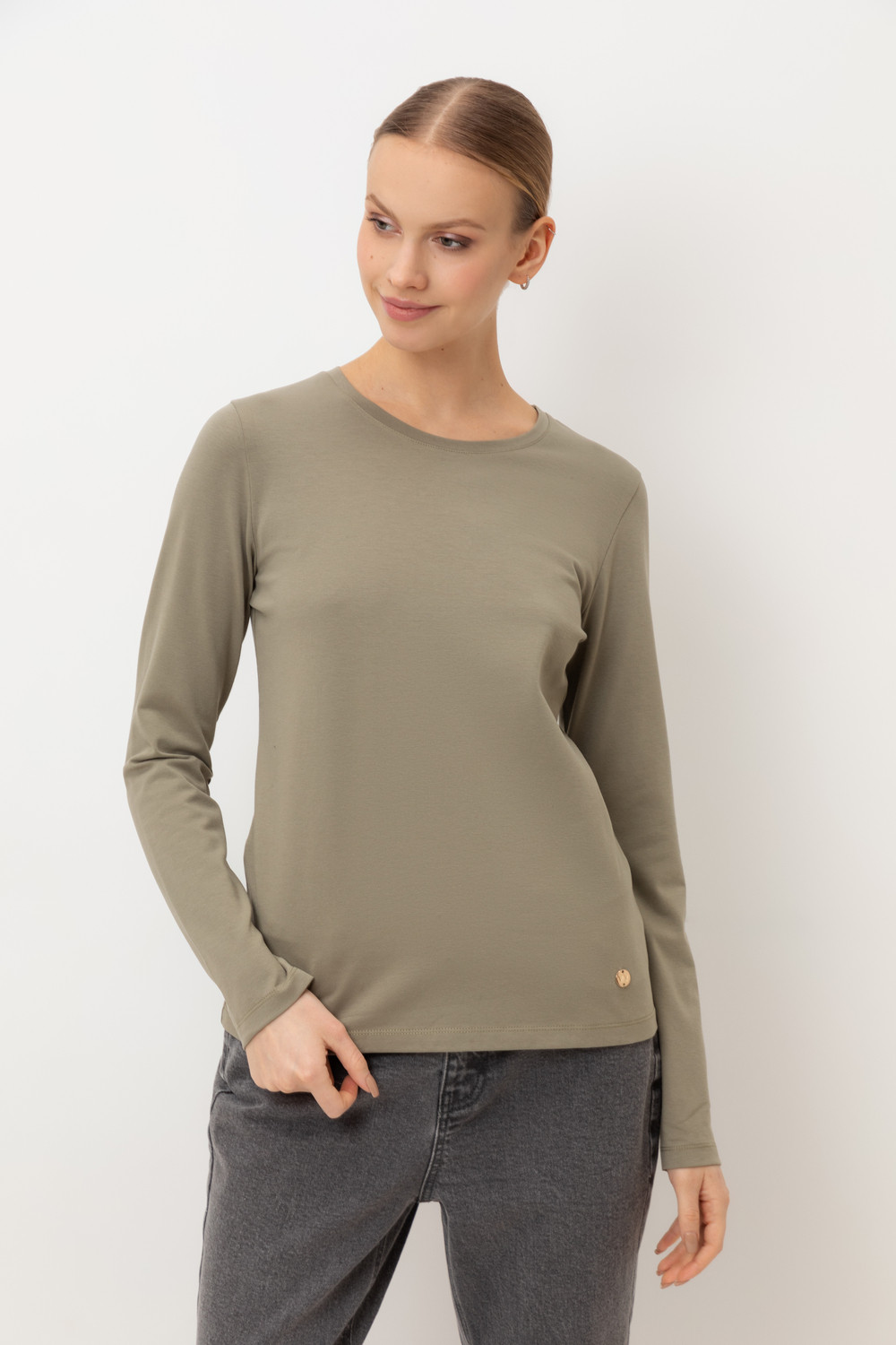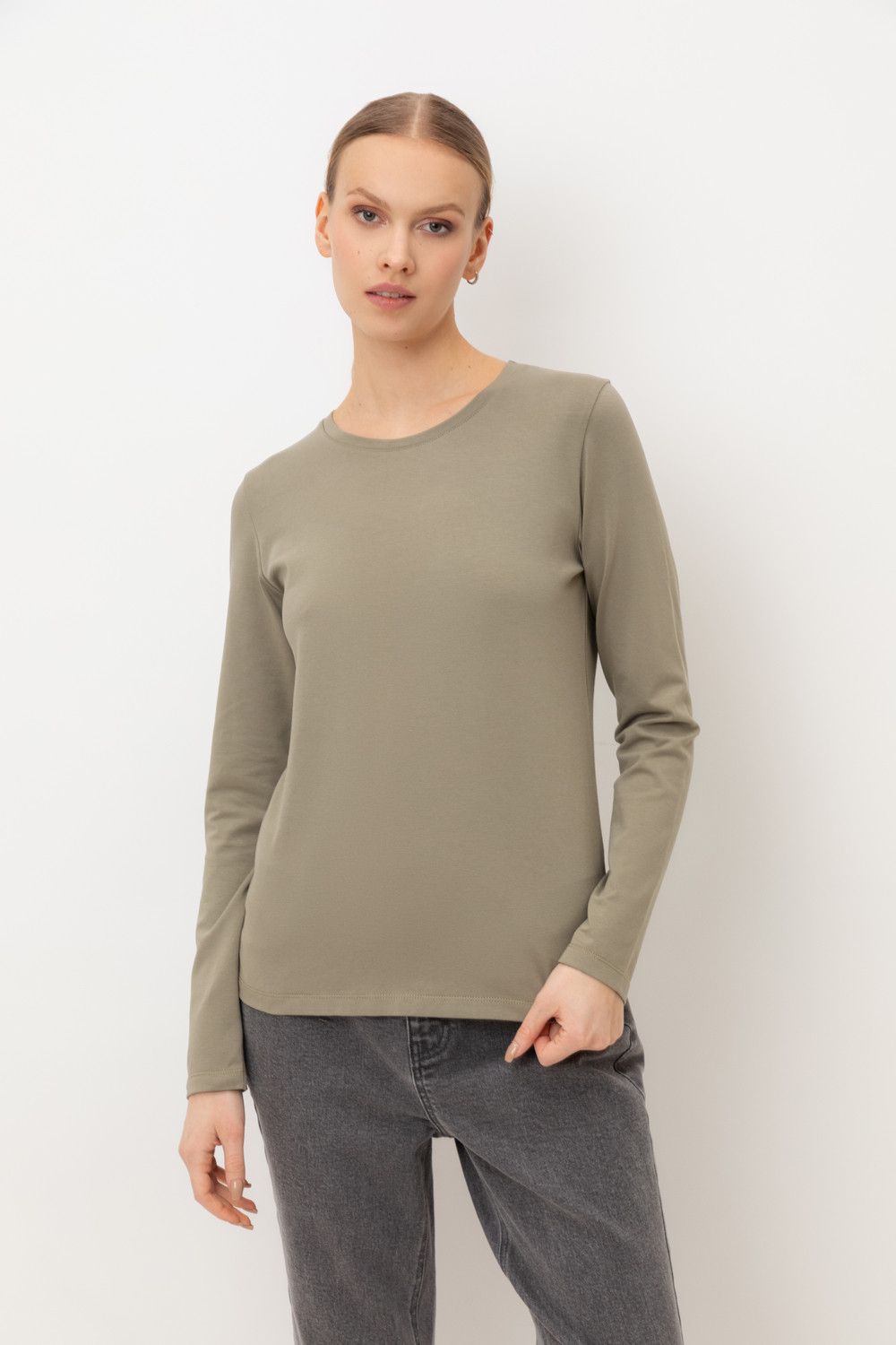 Базовый лонгслив из премиального трикотажа DOUBLE FACE. Особая обработка ткани придает легкость и шелковистость текстуры. Имеет классический круглый вырез и удобный прямой крой.