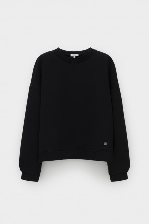 Объемный свитшот, выполненный из петельчатого футера трехнитки, отличается особой текстурой и комфортом. Использование особой силиконовой обработки придает исключительную мягкость и приятный шелковистый эффект.