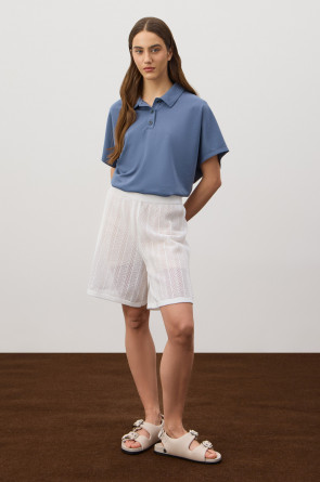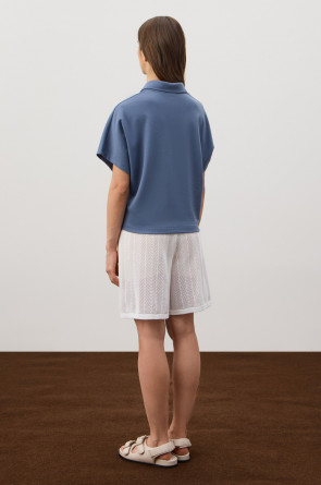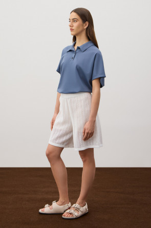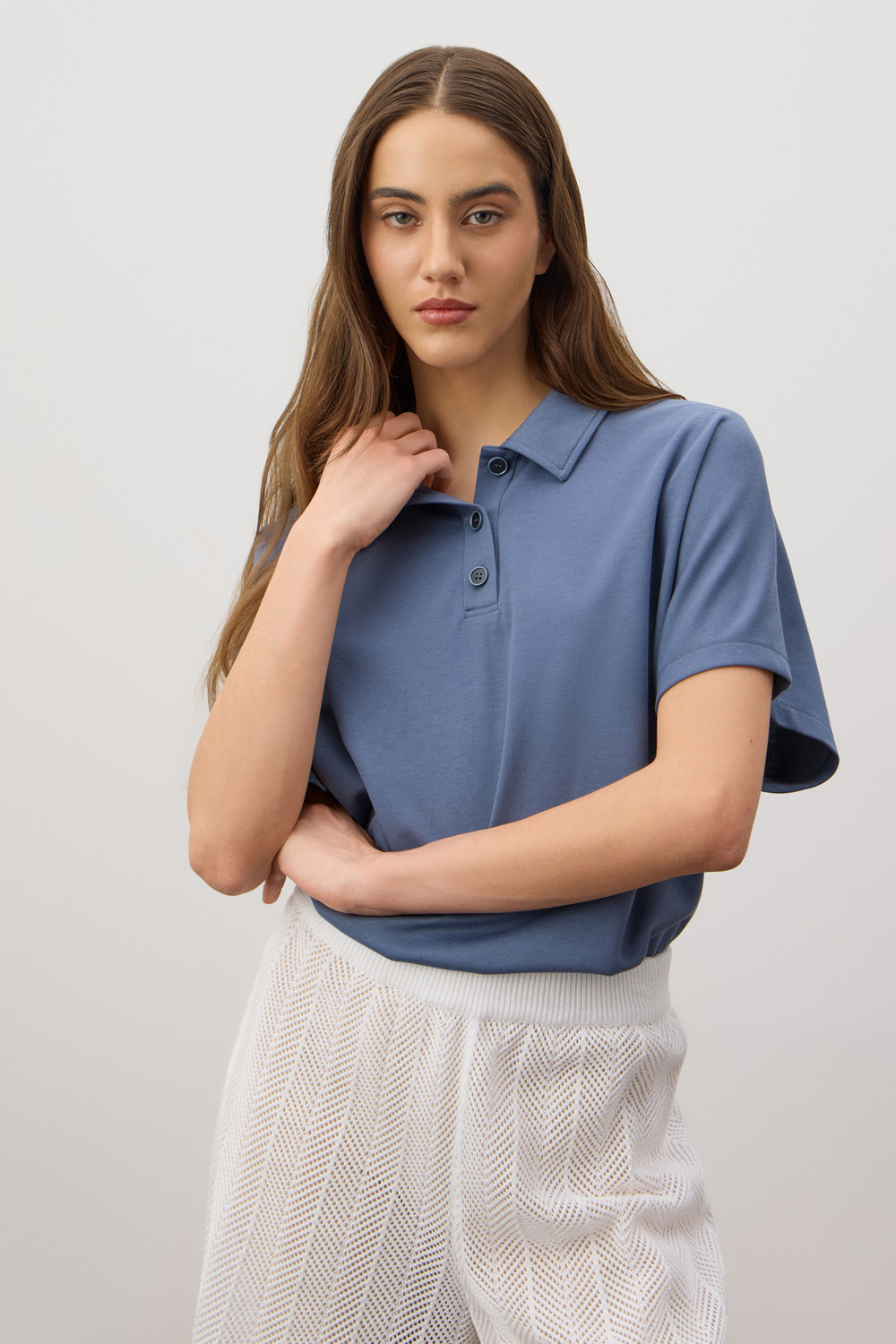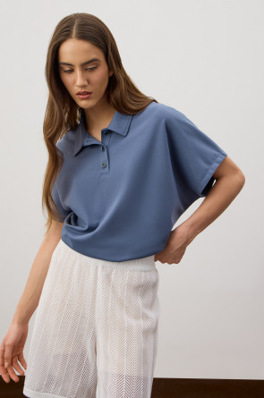 Футболка-поло из премиального хлопка. Свободные рукава создают непринужденный и расслабленный стиль. У модели классический воротник с пуговицами в тон изделия.