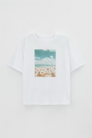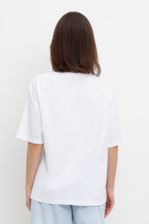 Удлиненная футболка из 100% натурального хлопка. Свободные рукава со спущенной линией плеча создают объём и свободный силуэт. Принт изготовлен из стойких текстильных красителей.