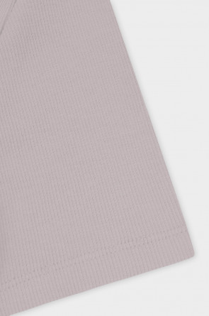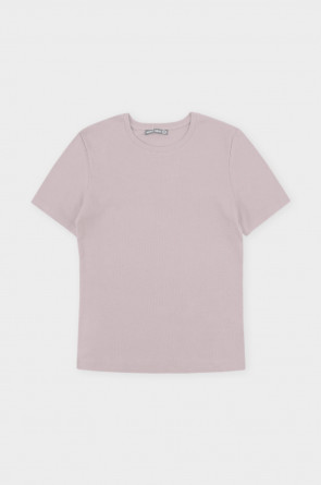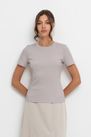 Базовая футболка из кашкорсе. Короткий рукав от плеча и низ изделия обработаны плоскими швами.