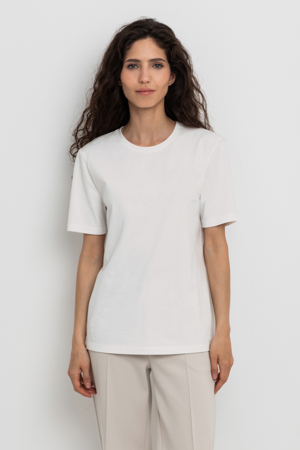 Удлиненная свободная футболка из мягкого футера с рукавами наизнанку.