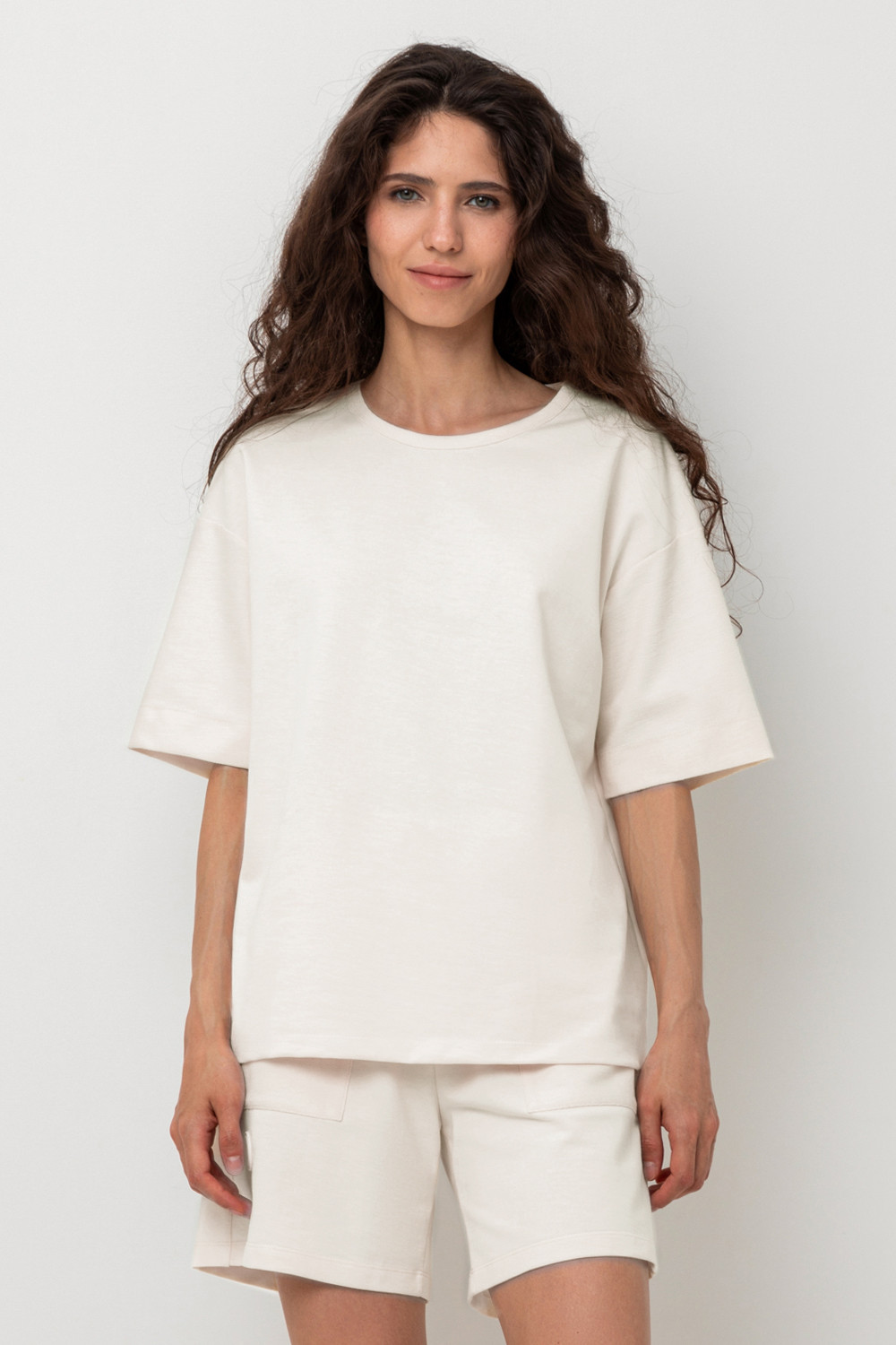 Свободная футболка из однотонного пике из длинноволокнистого гребенного хлопка.