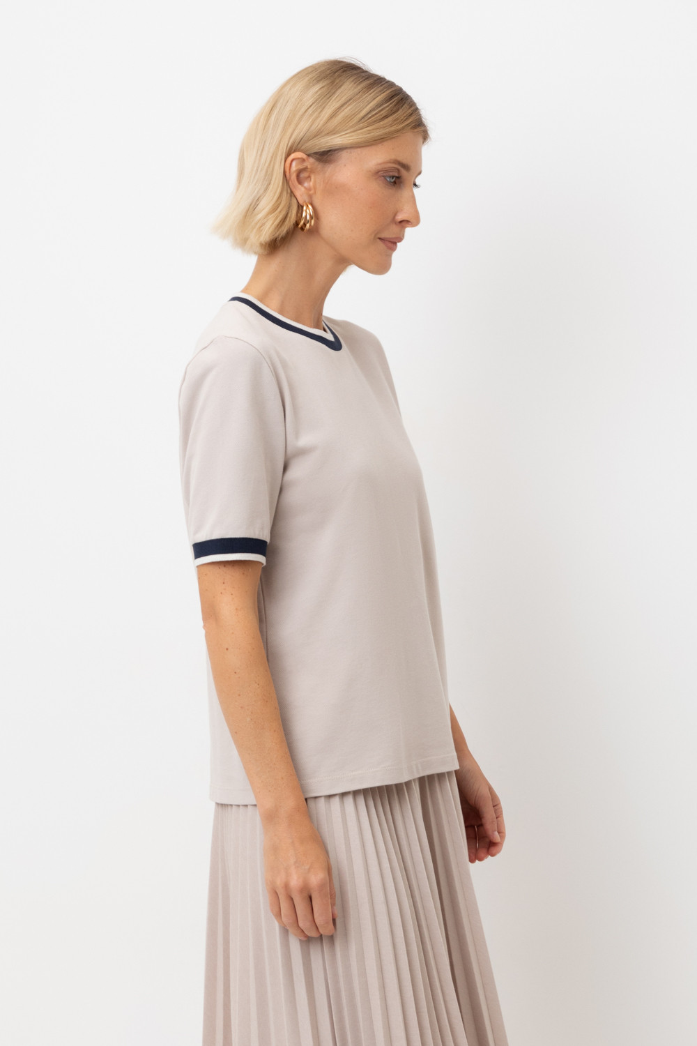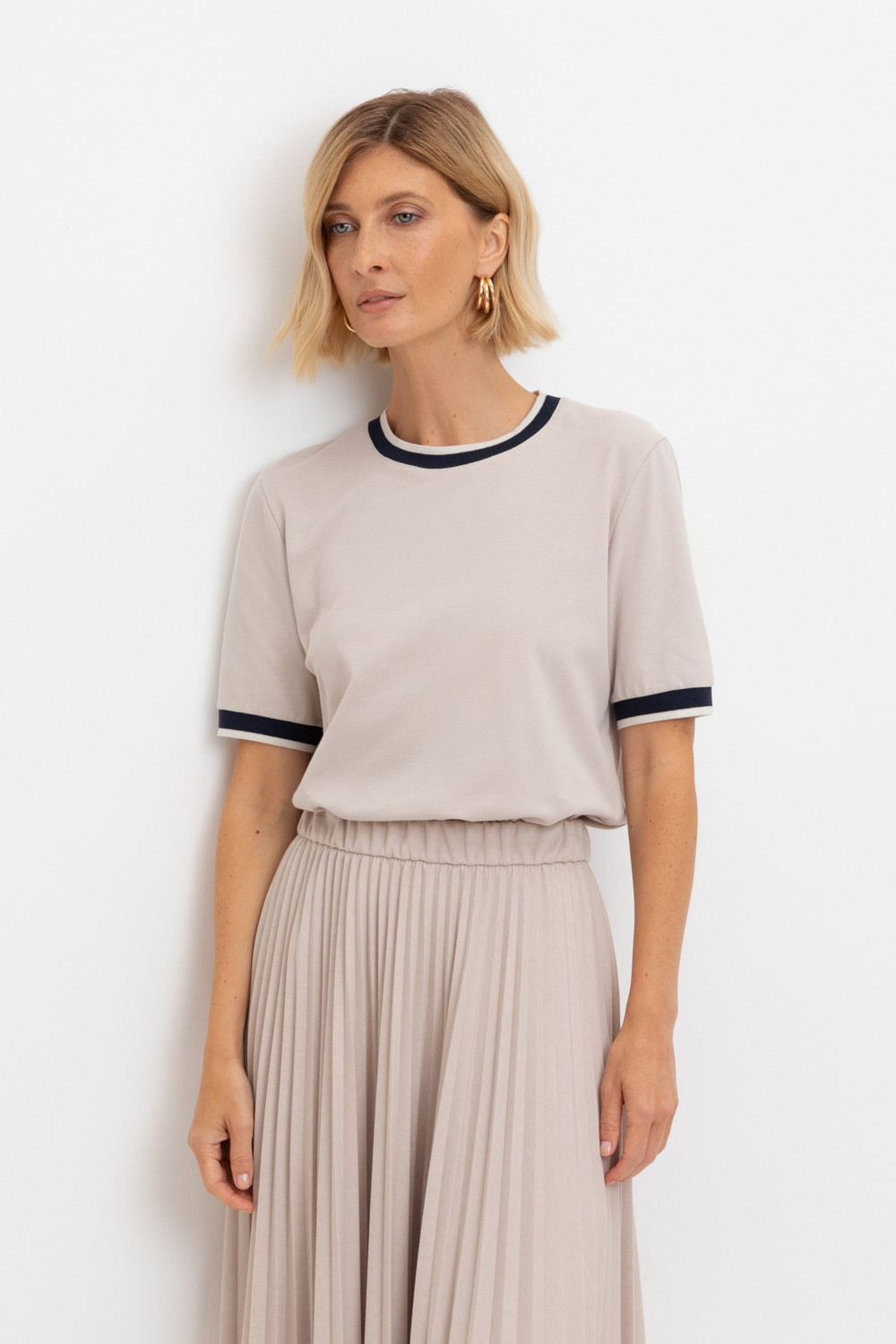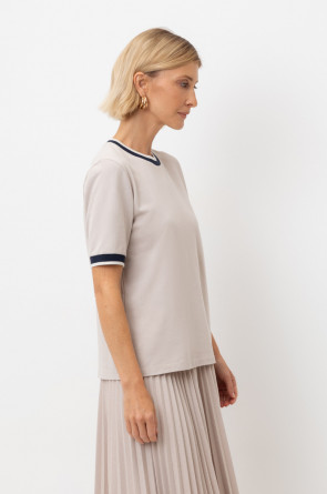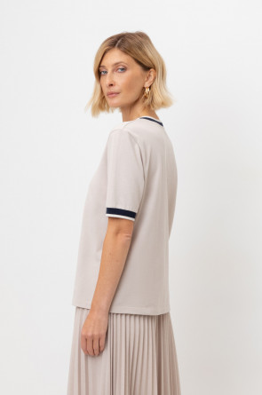 Футболка, изготовленная из 100% хлопка в переплетении пике. Дарит ощущение комфорта и легкости. Серо-бежевый цвет легко комбинируется с различными элементами гардероба, создавая универсальные образы. Вязаный воротник и манжеты, выполненные с особым вниманием к деталям, придают изделию аккуратный и завершенный вид.