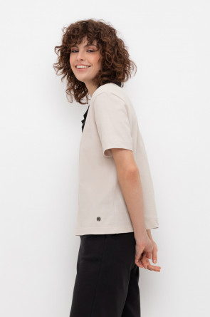 Джемпер поло с короткими рукавами из пике с V-образным вырезом и декоративной пуговицей .