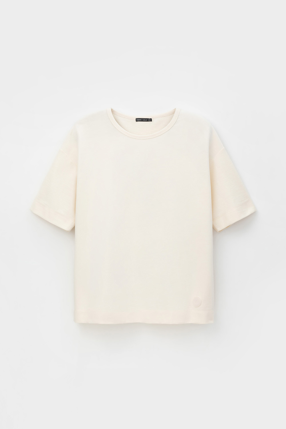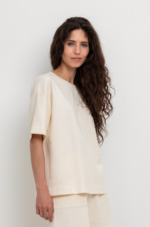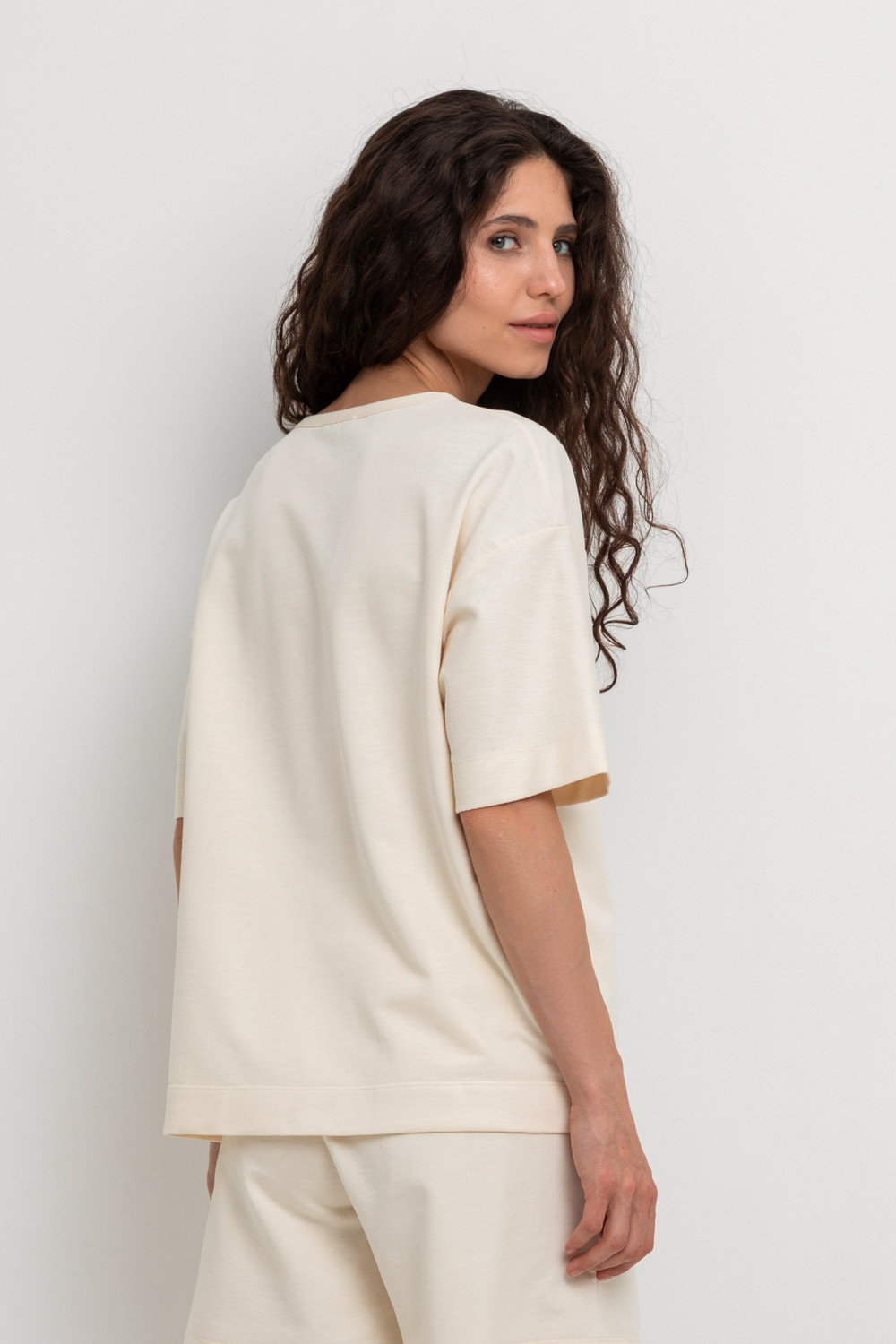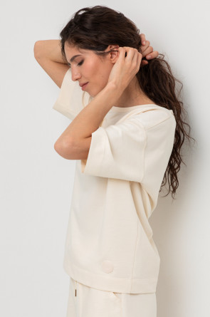 Удлиненная свободная футболка из мягкого футера с рукавами наизнанку.