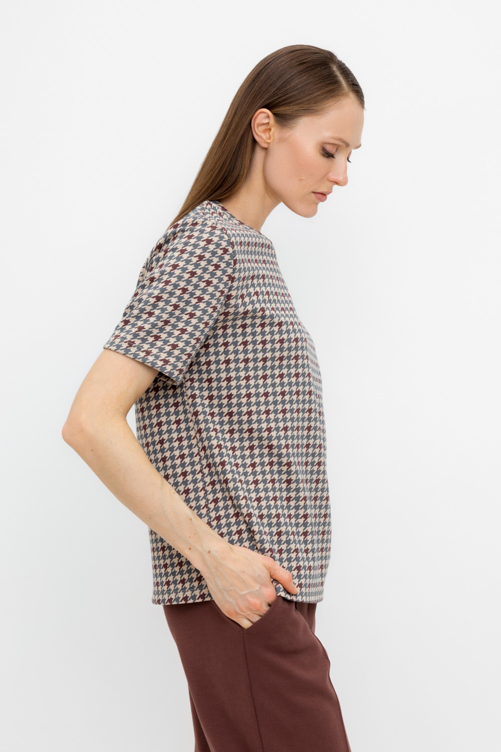 Базовая футболка из плотного набивного трикотажа интерлок.