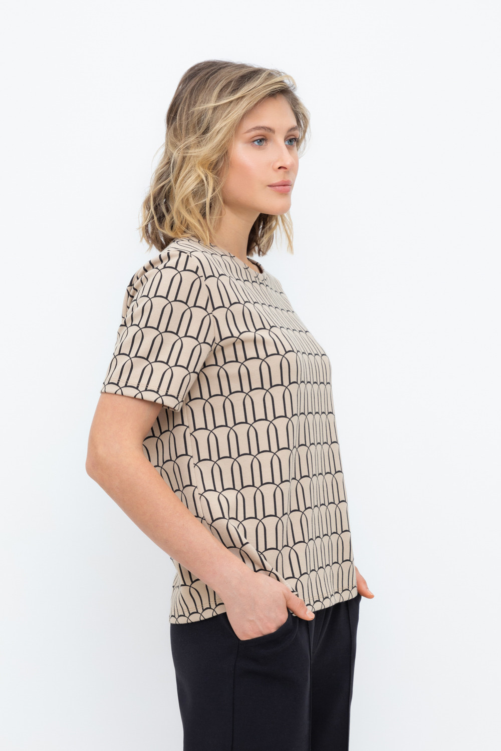 Базовая футболка из плотного набивного трикотажа интерлок.