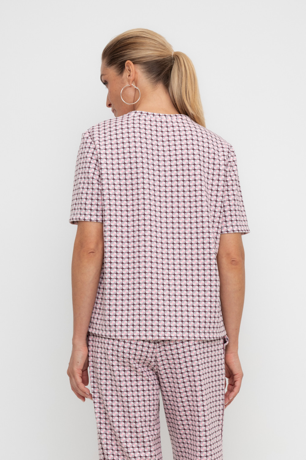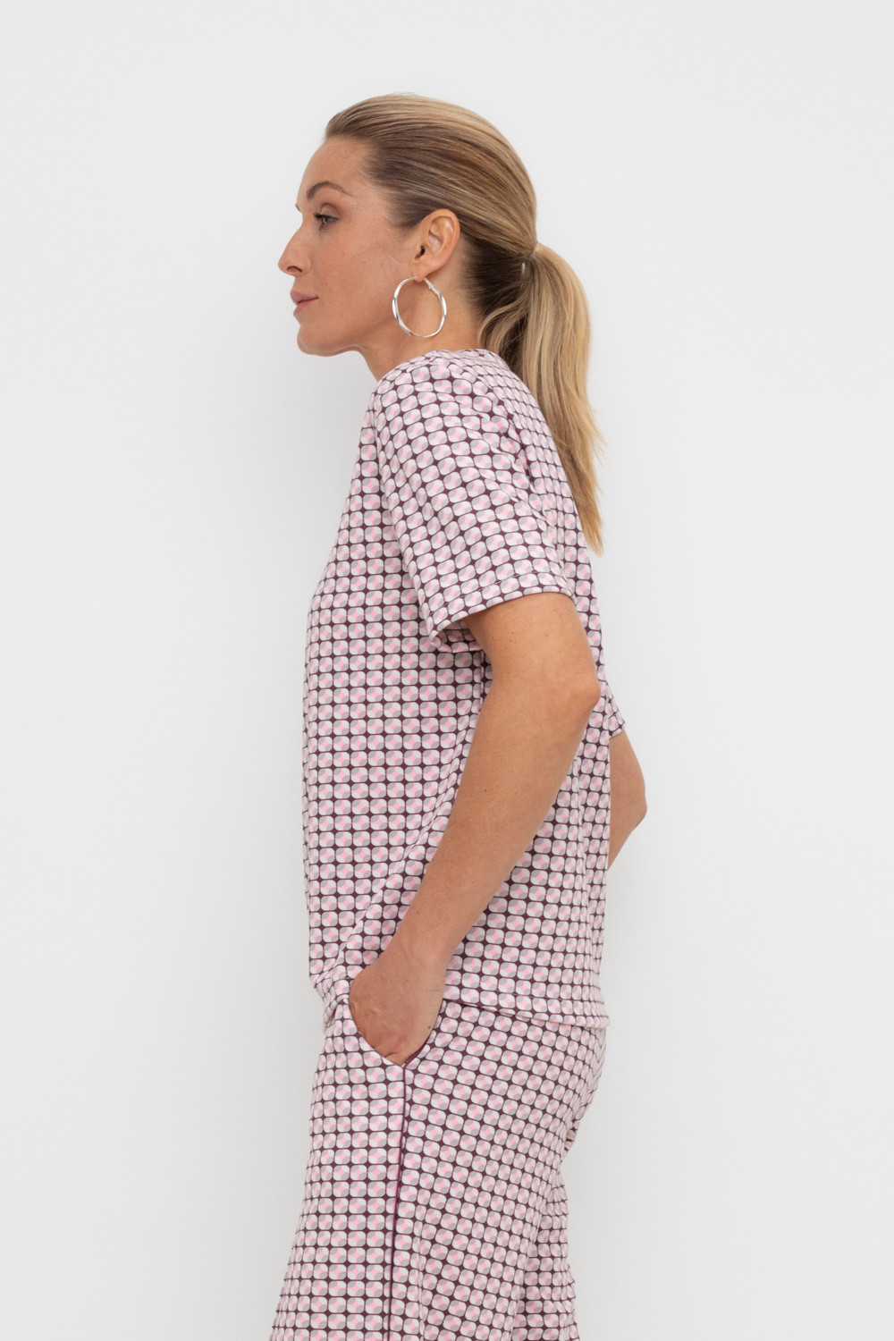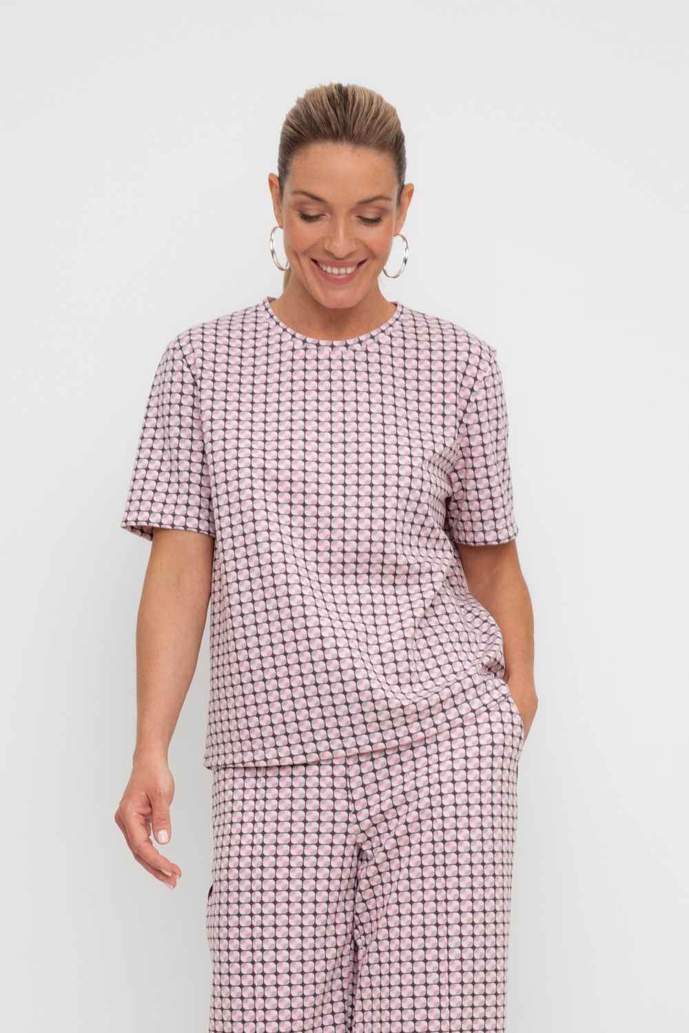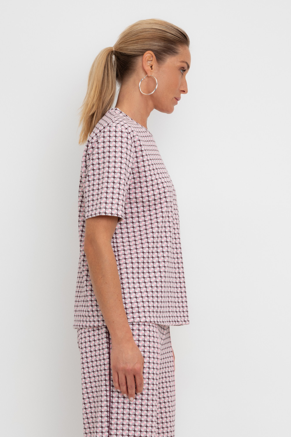 Футболка прямого силуэта, изготовленная из премиального трикотажного полотна DOUBLE FACE. Мягкий на ощупь трикотаж выполнен из высококачественной гребенной пряжи, а его яркий графический дизайн добавляет летнего настроения.