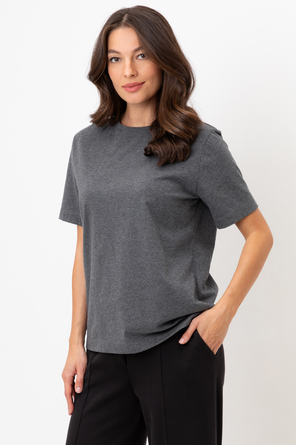 Базовая женская футболка из длинноволокнистого гребенного хлопка с эластаном.