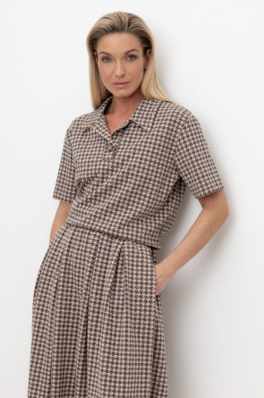 Джемпер поло с короткими рукавами из интерлока с V-образным вырезом и декоративной пуговицей.