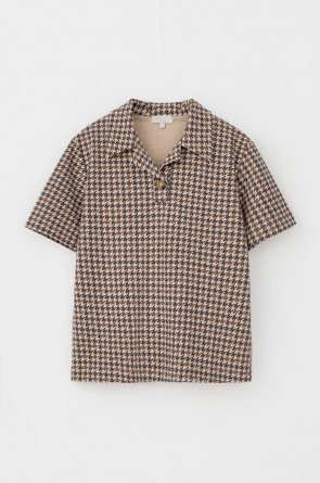 Джемпер поло с короткими рукавами из интерлока с V-образным вырезом и декоративной пуговицей.