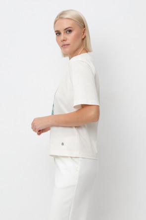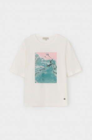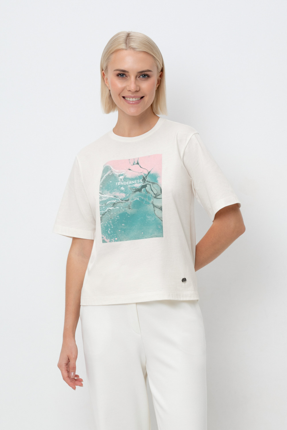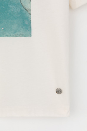 Футболка прямого силуэта из высококачественного гребенного хлопка. Мягкий на ощупь принт выполнен из водных красок, что обеспечивает устойчивость к многократным стиркам, а его дизайн добавляет летнего настроения.