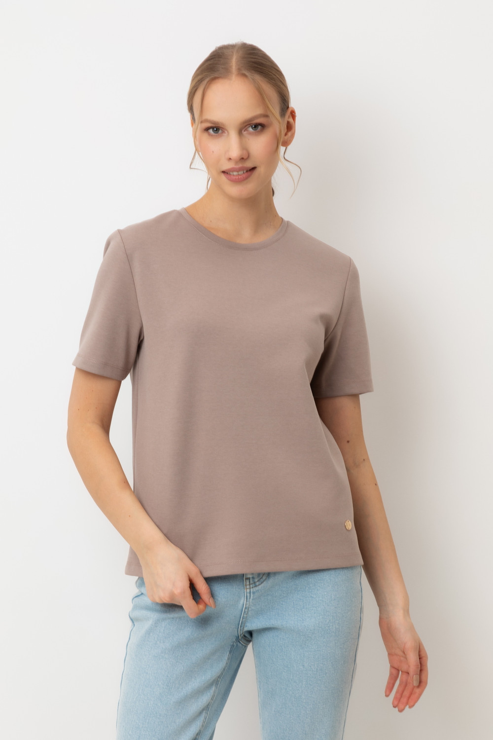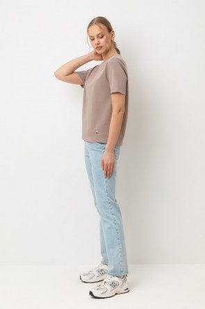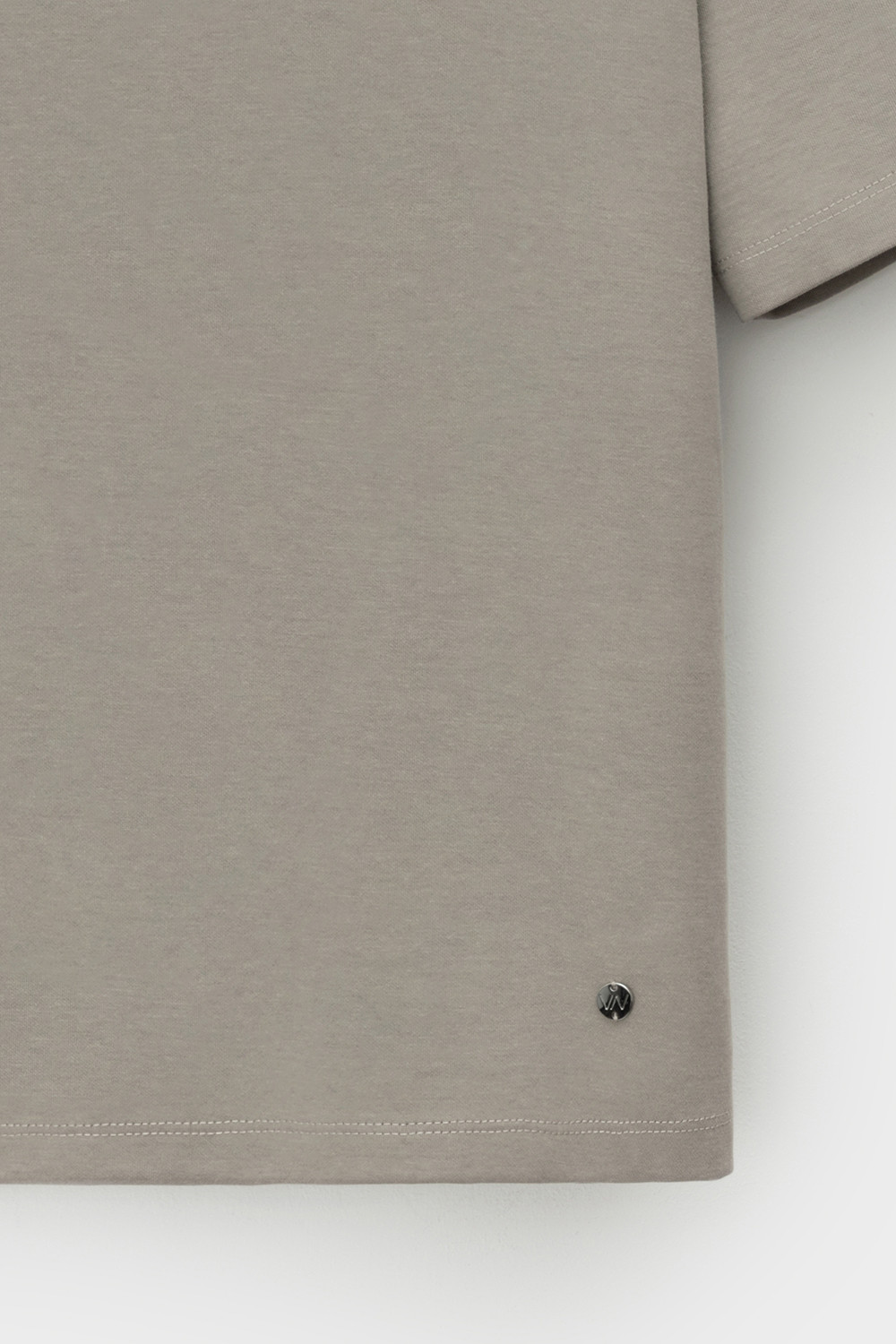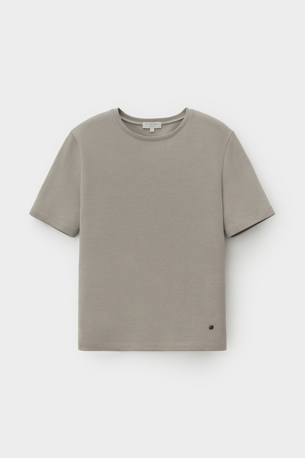 Базовая футболка из премиального трикотажа DOUBLE FACE. Трикотаж прошел особую обработку силиконом, что придает ему легкость и шелковистость текстуры. Имеет классический круглый вырез и удобный прямой крой.