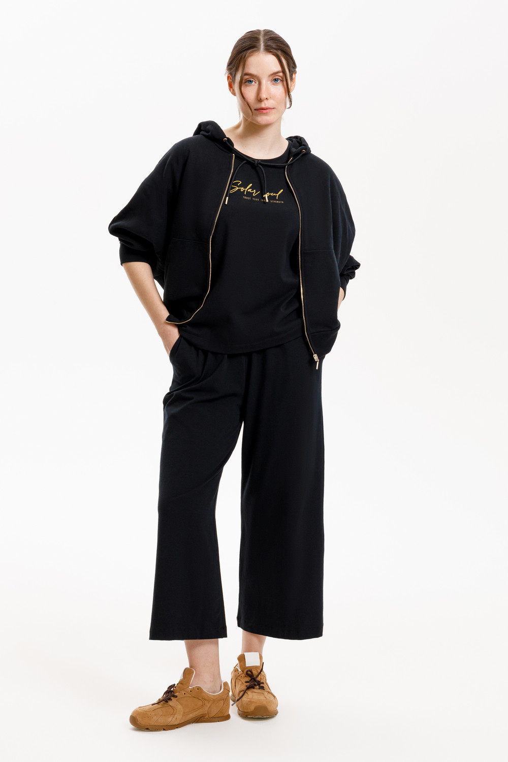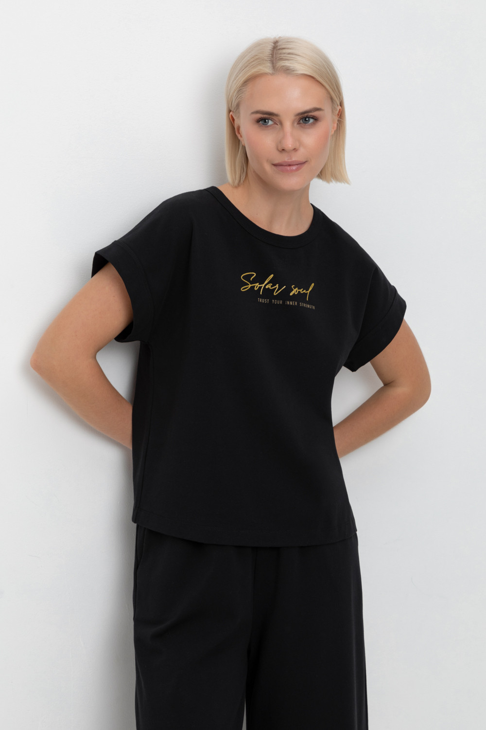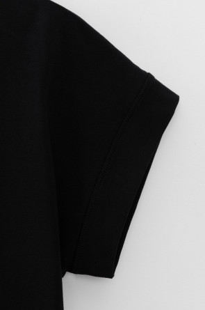 Футболка прямого силуэта из высококачественного гребенного хлопка с добавлением эластана. Мягкая и струящаяся фактура полотна за счет специальной обработки soft touch дает ощущение комфорта в жаркие летние дни. Мягкий на ощупь принт выполнен из водных красок, что обеспечивает устойчивость к многократным стиркам.