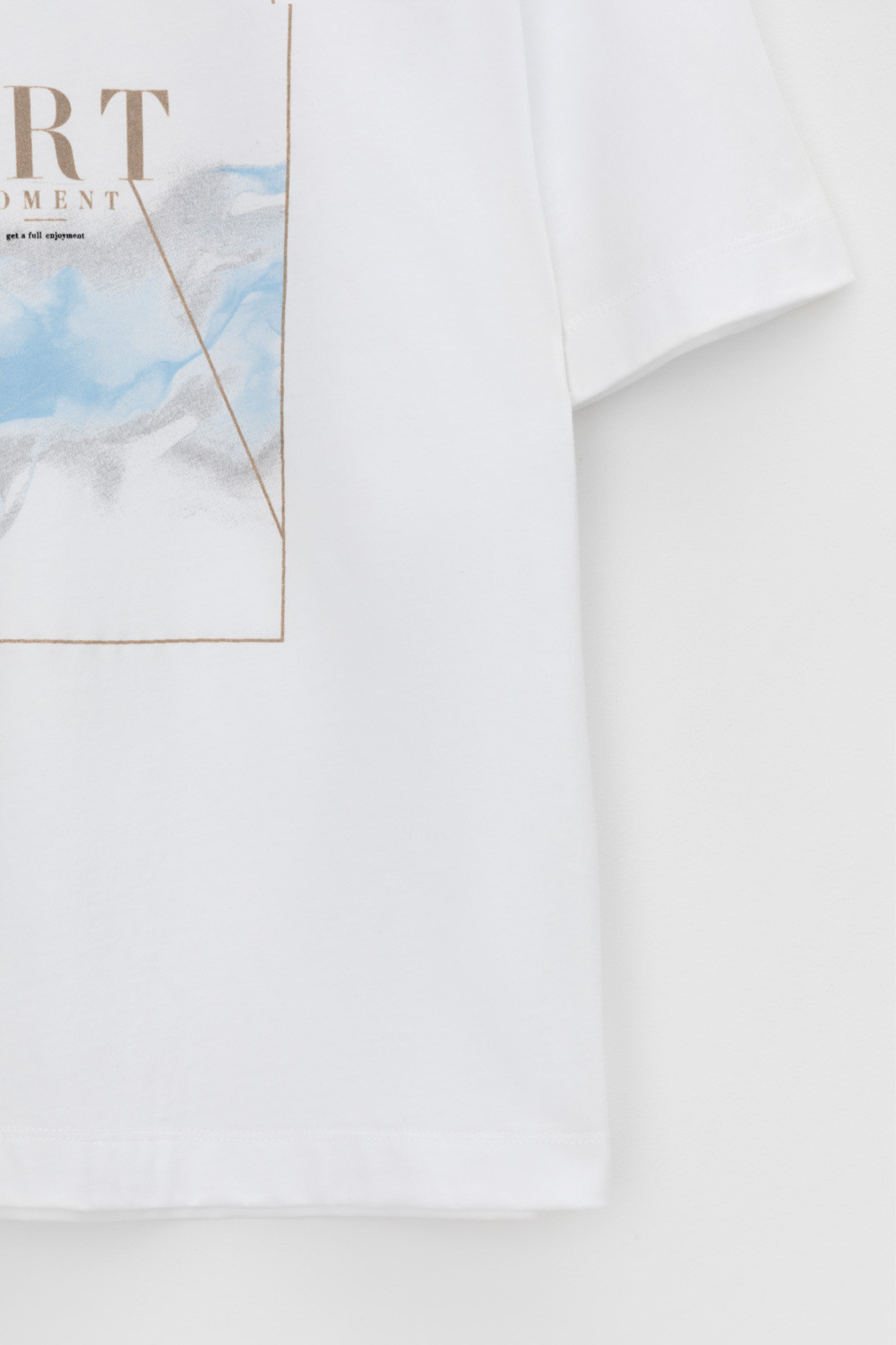 Футболка прямого силуэта из высококачественного гребенного хлопка. Мягкий на ощупь принт выполнен из водных красок, что обеспечивает устойчивость к многократным стиркам, а его дизайн добавляет летнего настроения.