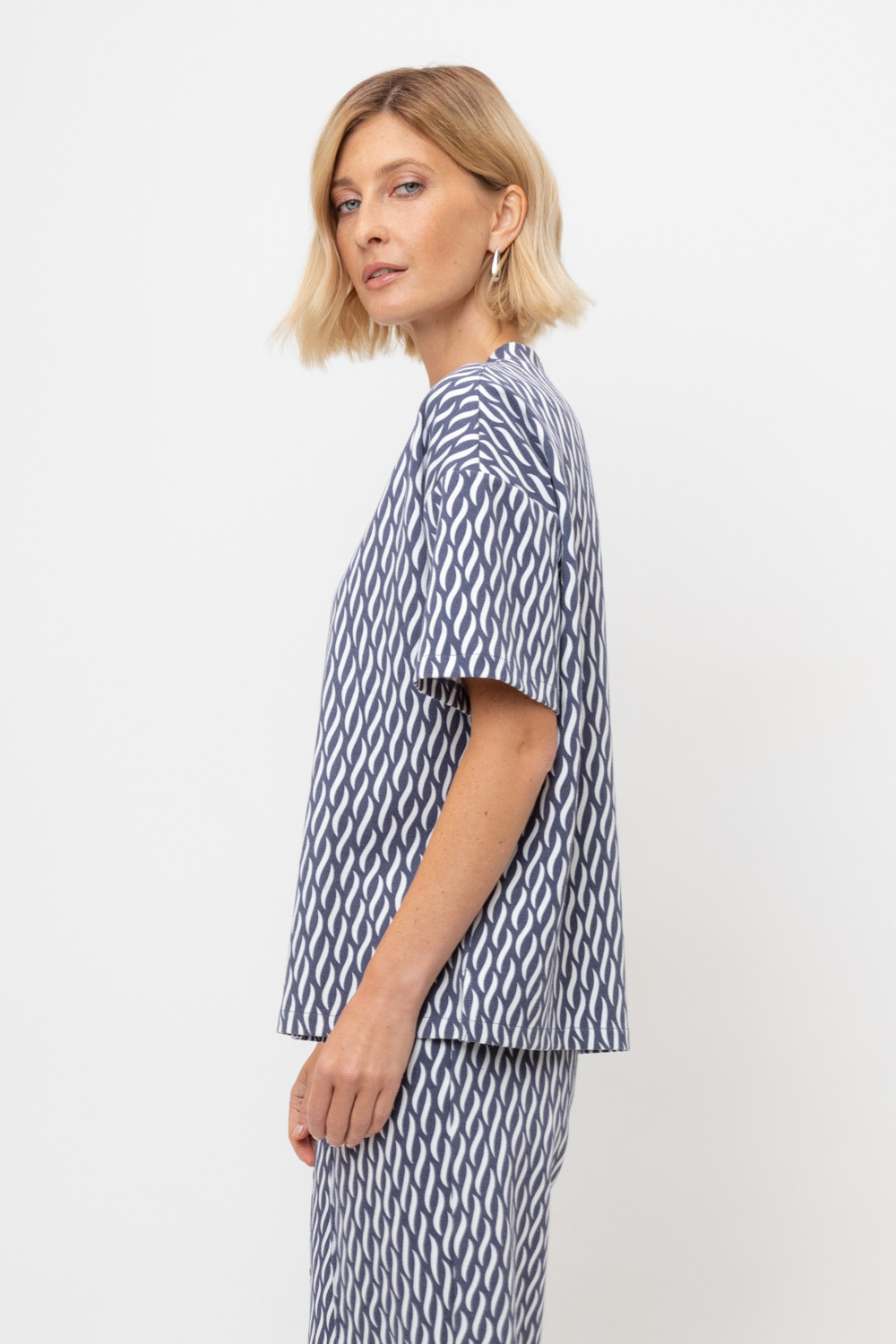 Блуза прямого силуэта со спущенным рукавом, изготовленная из премиального трикотажного полотна DOUBLE FACE. Мягкий на ощупь трикотаж выполнен из выскокачественной гребенной пряжи, а его дизайн добавляет летнего настроения.