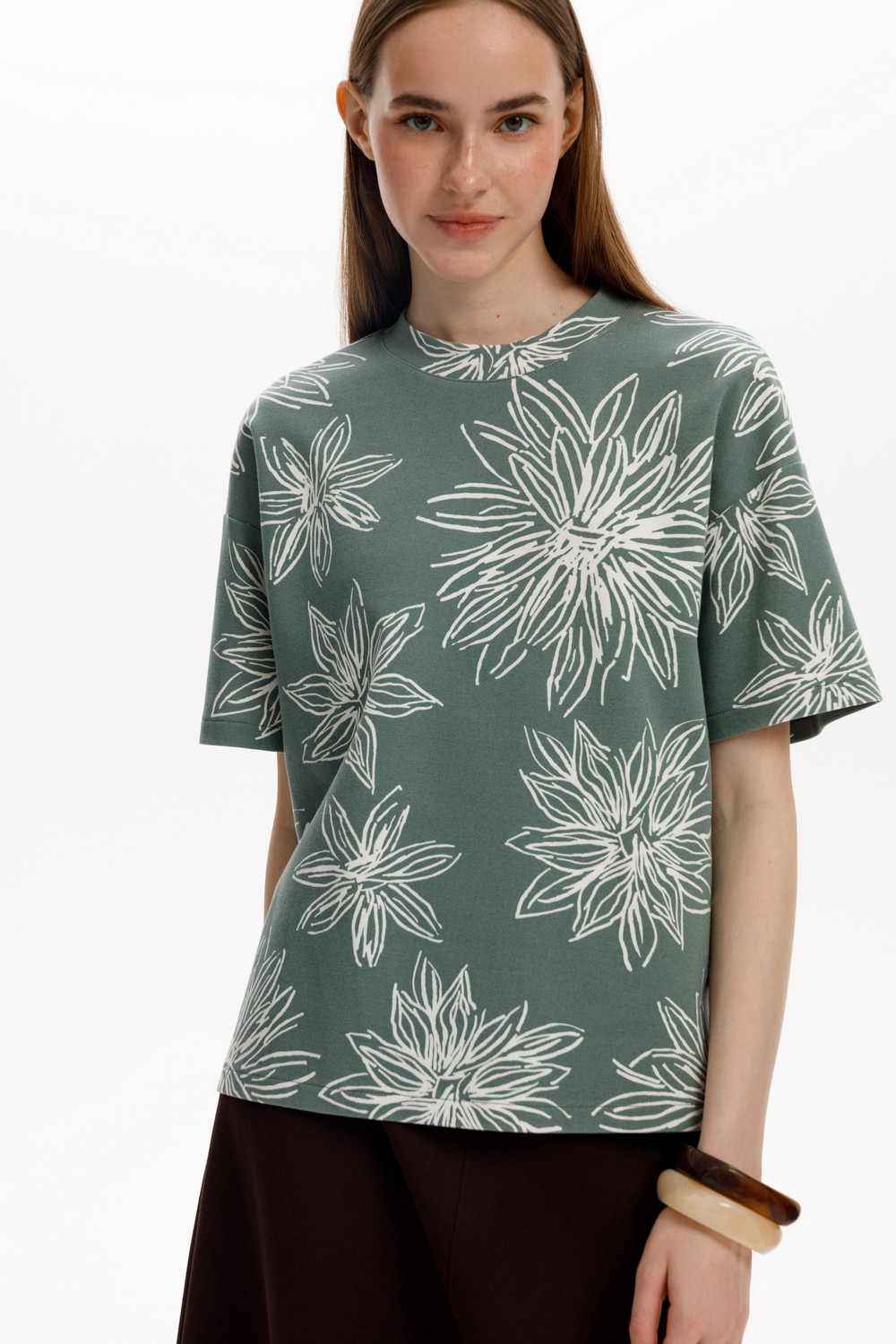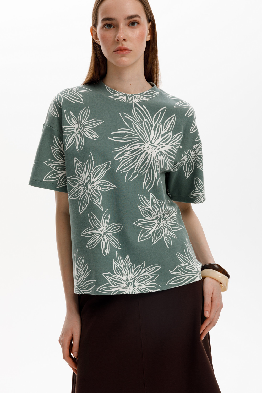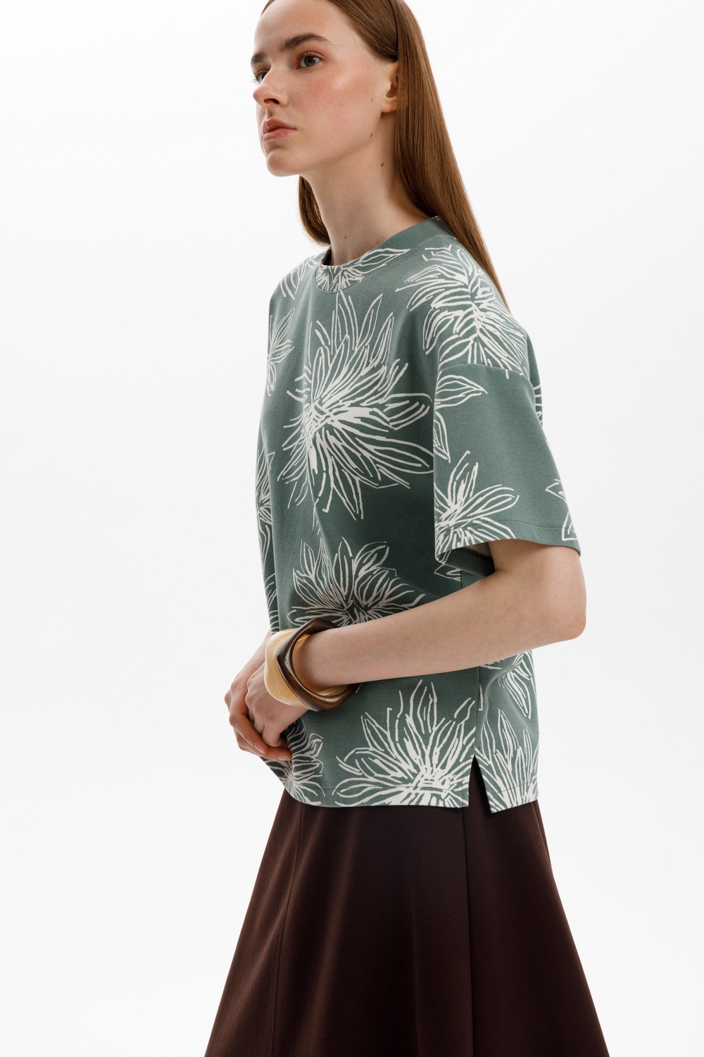 Блуза прямого силуэта со спущенным рукавом, изготовленная из премиального трикотажного полотна DOUBLE FACE. Мягкий на ощупь трикотаж выполнен из высококачественной гребенной пряжи.