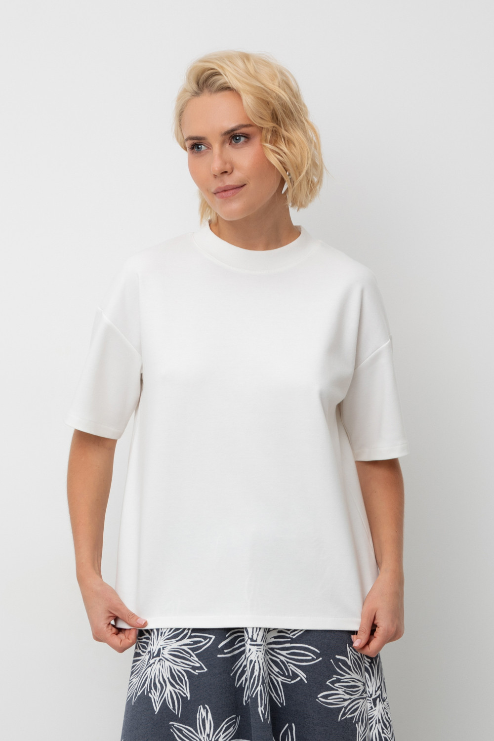 Блуза прямого силуэта со спущенным рукавом, изготовленная из премиального трикотажного полотна DOUBLE FACE. Мягкий на ощупь трикотаж выполнен из высококачественной гребенной пряжи.